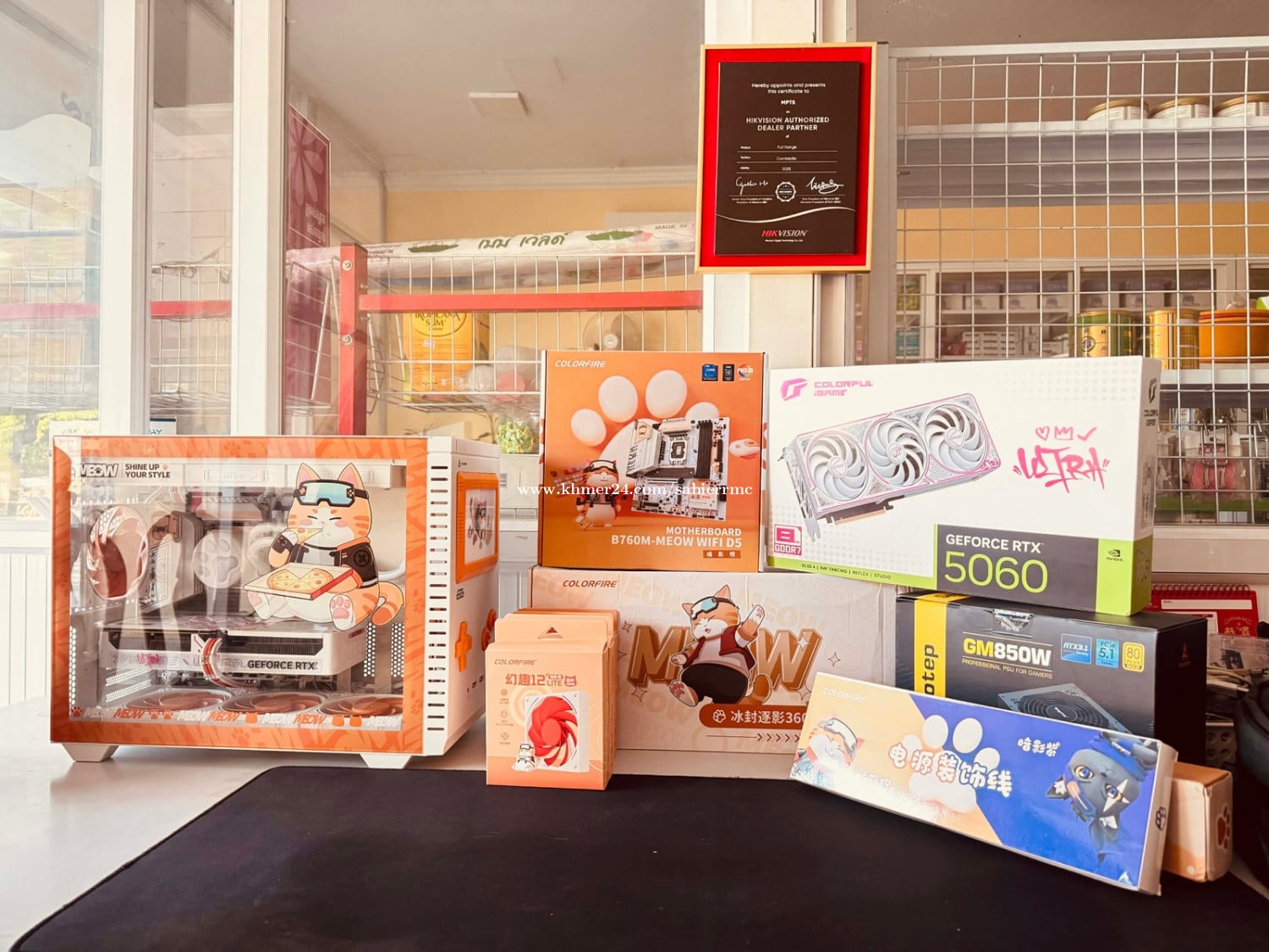 860$ CPU: Intel Core i5-14500 MB: COLORFIRE B760M-MEOW WIFI D5 ORANGE Edition RAM: Viper DDR5 ARGB 5600MHZ 32GB (16GBx2) Cooler: COLORFIRE MEOW 360 ARGB CPU Liquid Cooler 3Fans Fan: Colorfire 12 Lite ARGB Fan x5 Storage: Colorful CN700 PRO 1TB M.2 NVMe 7400MB/S PSU: Segotep GM850W 80 Plus Gold PCIe 5.1 Case: Segotep X Colorfire Meow Edition 2025 GPU: Colorful RTX 5060 Ultra W OC Triple Fans ARGB Liight Accessories: Colorfire Power Cable, CPU Power Cable & GPU Cable Orange Edition Telegram : 0965527xxxClick To Call
