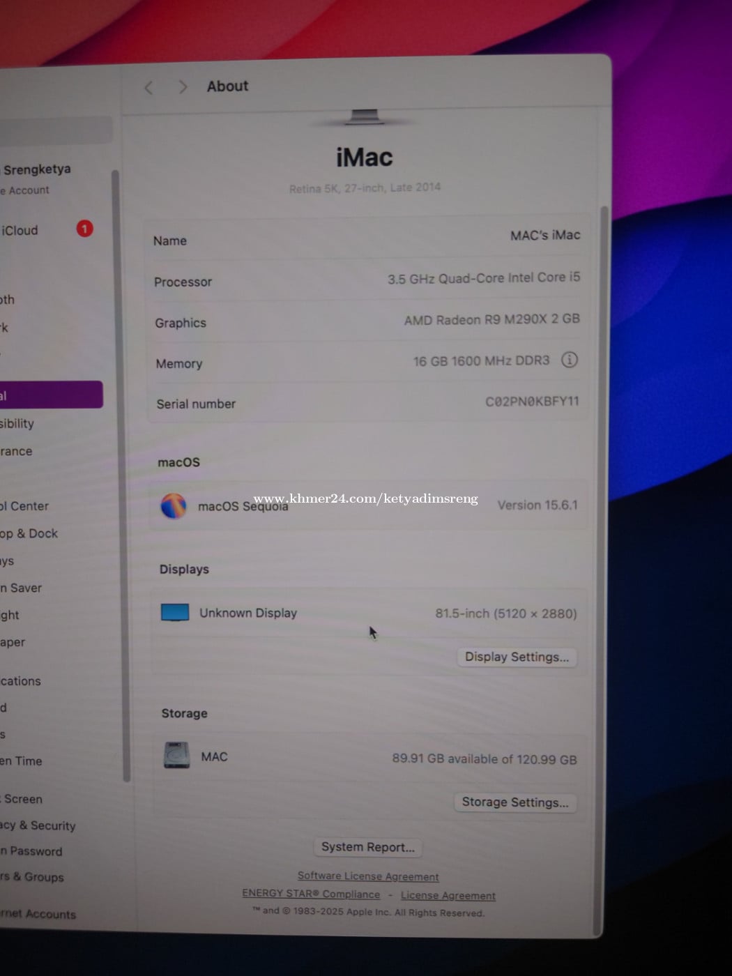 Imac 2014 27" 5k screen Spec: core I5 quad core 3.5ghz can boost up to 3.9ghz 16g ddr3 ram Fusion drive 128ssd 1T hard drive Os: I update using open core legacy to seqouia. Just bought it a few days ago but most software is hard to crack. So I want to change back to window or get another MacBook. Still have 3month warranty from the seller