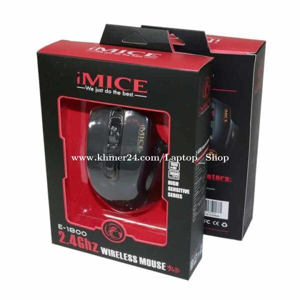 -Brand: iMICE -Type: 2.4GH Wireless Mouse -Model: E-1800 -Color: Black -Tracking method: Optical -Interface type: USB -Mice Features: Wireless -Power type: AAA Battery x2 -Mouse Sensitivity: 1600 DPI -DPI: ≤ 800, 1200, 1600, Switchable -Number of Buttons: 4 -Connectivity: USB, Wireless -Mouse size: 115x80x40mm 🙏ទំនាក់ទំនងជាវ 📲098757xxxClick To Call, 095555xxxClick To Call 👍Mobile & Telegram : 098757xxxClick To Call 🌐Website : https://www.laptopshop-kh.com