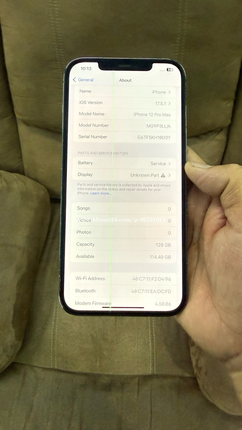Ip 12promax 128gស្គែនអេក្រង់ឡេីងមួយឆ្នូតប្រេីបាន លក់:225$ 077488xxxClick To Call