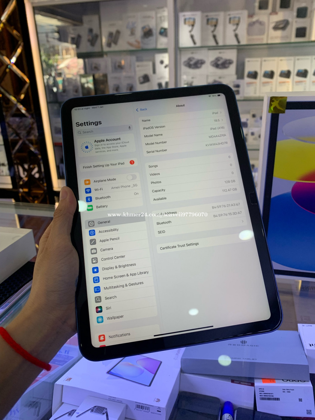 iPad A16មួយទឹក Memory 128G ថ្ម100% តម្លៃ345$
