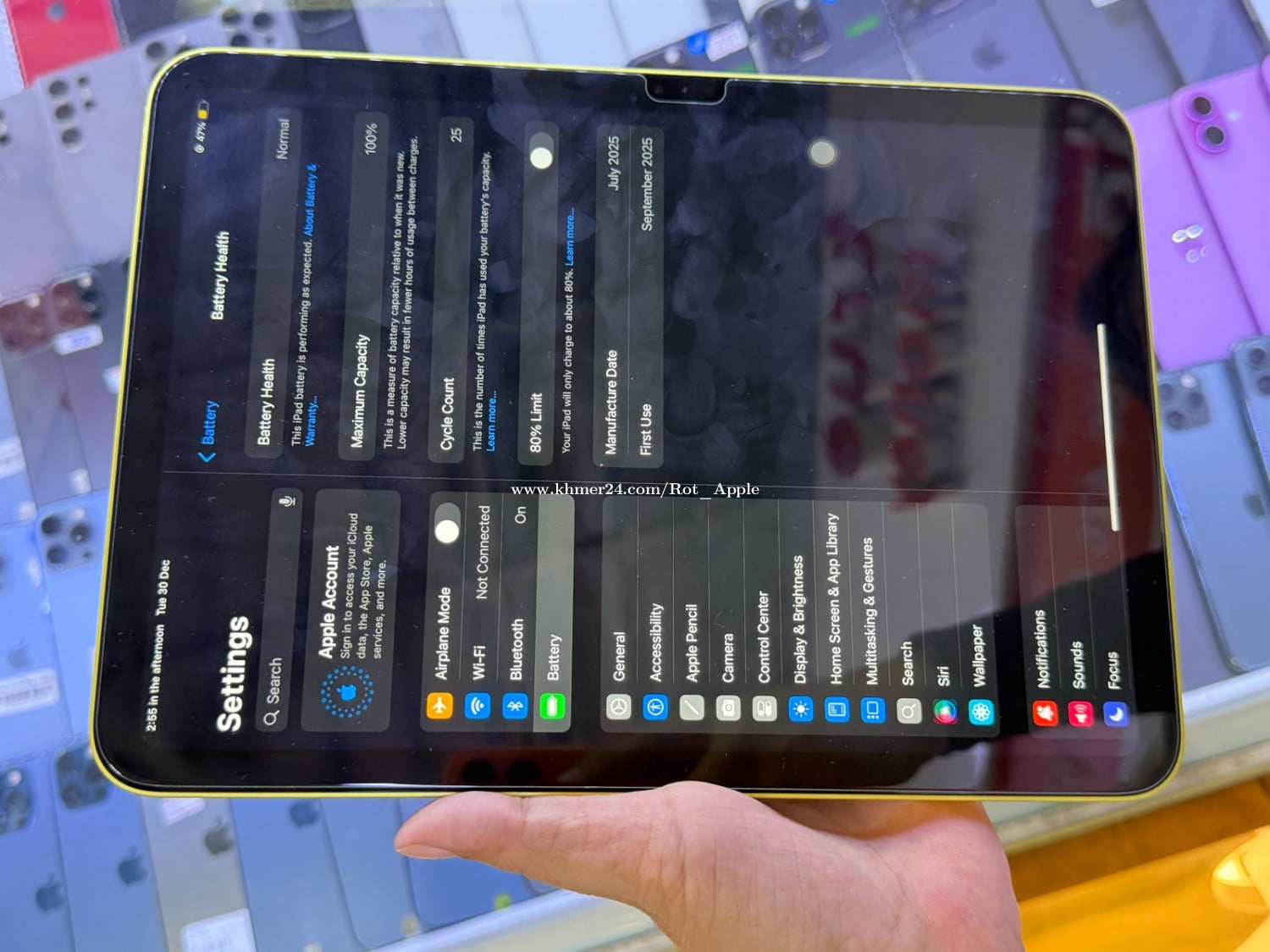 iPad A16 Memory 128G battery health 100% សាកបាន 25 ដង ស្អាត សានុំហ្សីន use WiFi