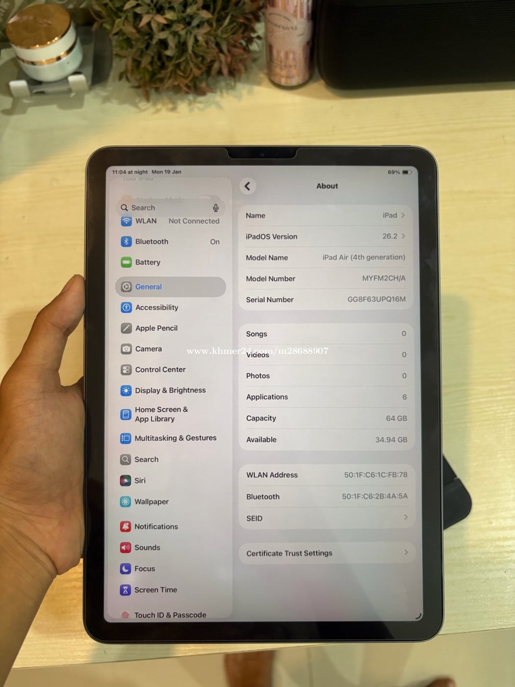 iPad Air 4 64g Conditions 97% Battery health good Zin all 093521xxxClick To Call ចរចារបាន