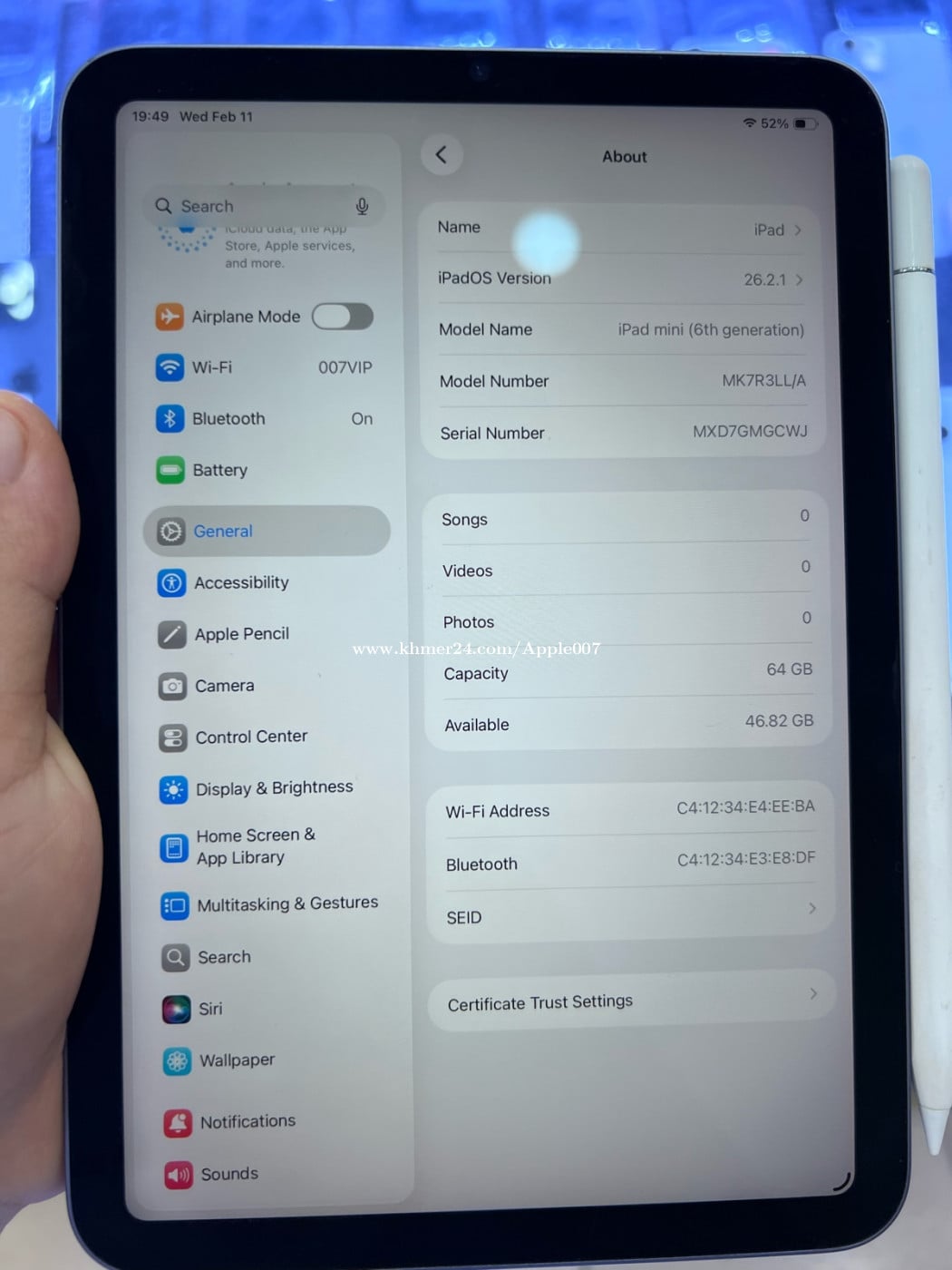 Ipad mini 6th generation ✨ ធានាសុំហ្ស៊ីន 64GB Wifi only ស្អាតដូចរូប Free ប៊ិចភ្ជាប់ជាមួយ 💵:220$ សម្រាប់ព័ត៌មានបន្ថែម: 🏘️Telegram Group: https://t.me/apple007vipphone ☎️Telegram: https://t.me/Apple007VIP 📍ទីតាំង: ផ្ទះលេខ 567, ផ្លូវកម្ពុជាក្រោម(ជិតស្តុបសន្ធរមុខ) ក្បែរABA Google maps: https://maps.app.goo.gl/niQoQhypffRDYjbo9?g_st=ic 📲 Tel : 0964094xxxClick To Call