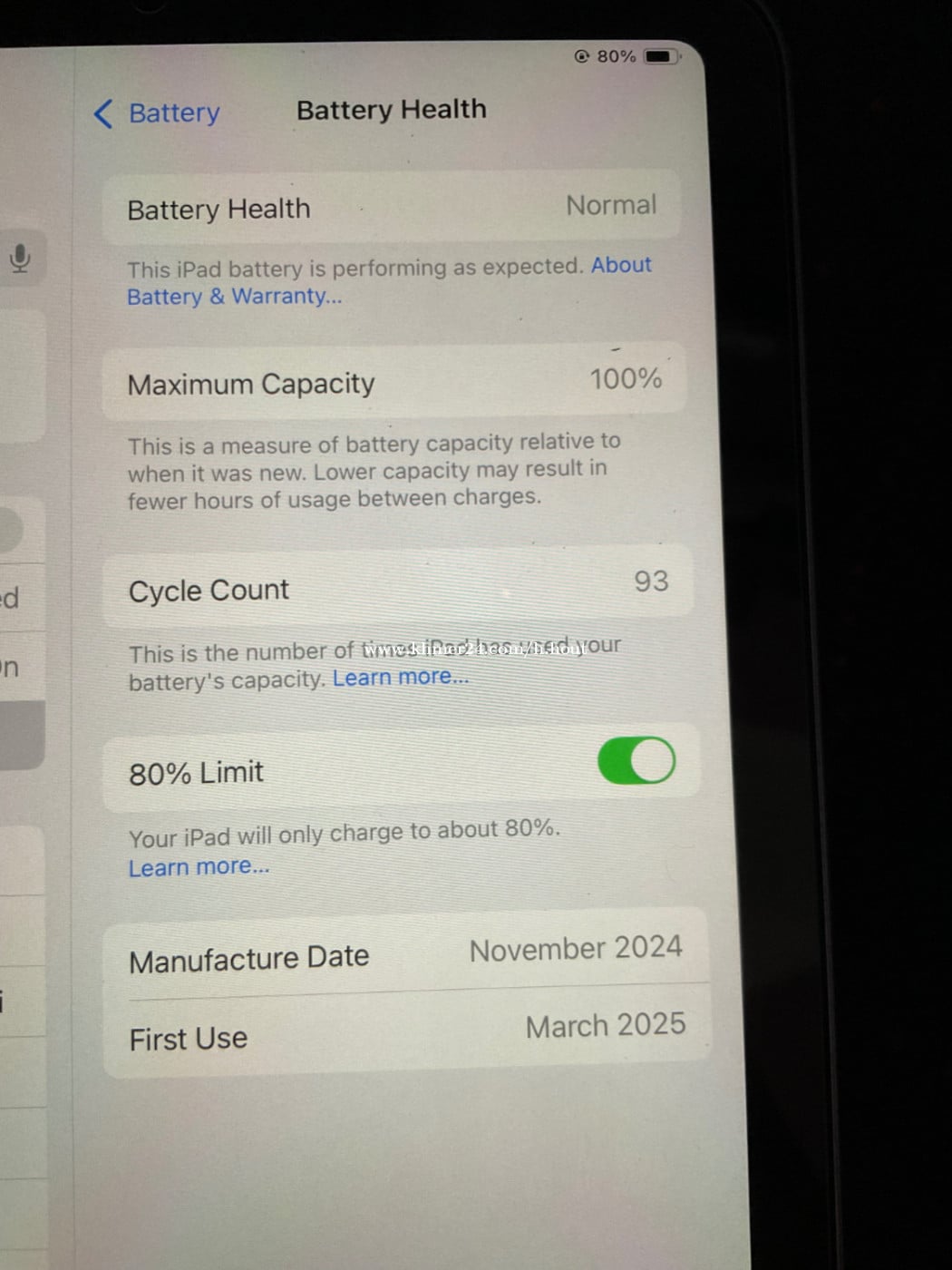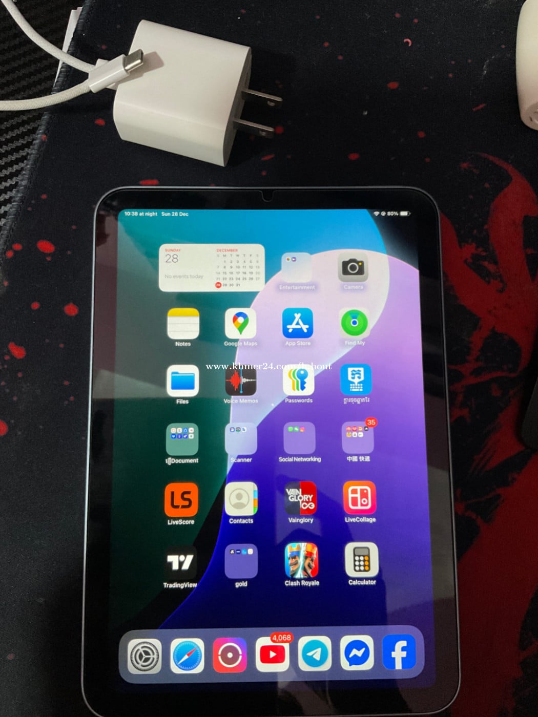 iPad mini7 99%ស្អាតគ្មានស្នាមអ៊ុតមួយជុំ Color blue WiFi only 128G Battery health 100% cycle count 93 Full accessory