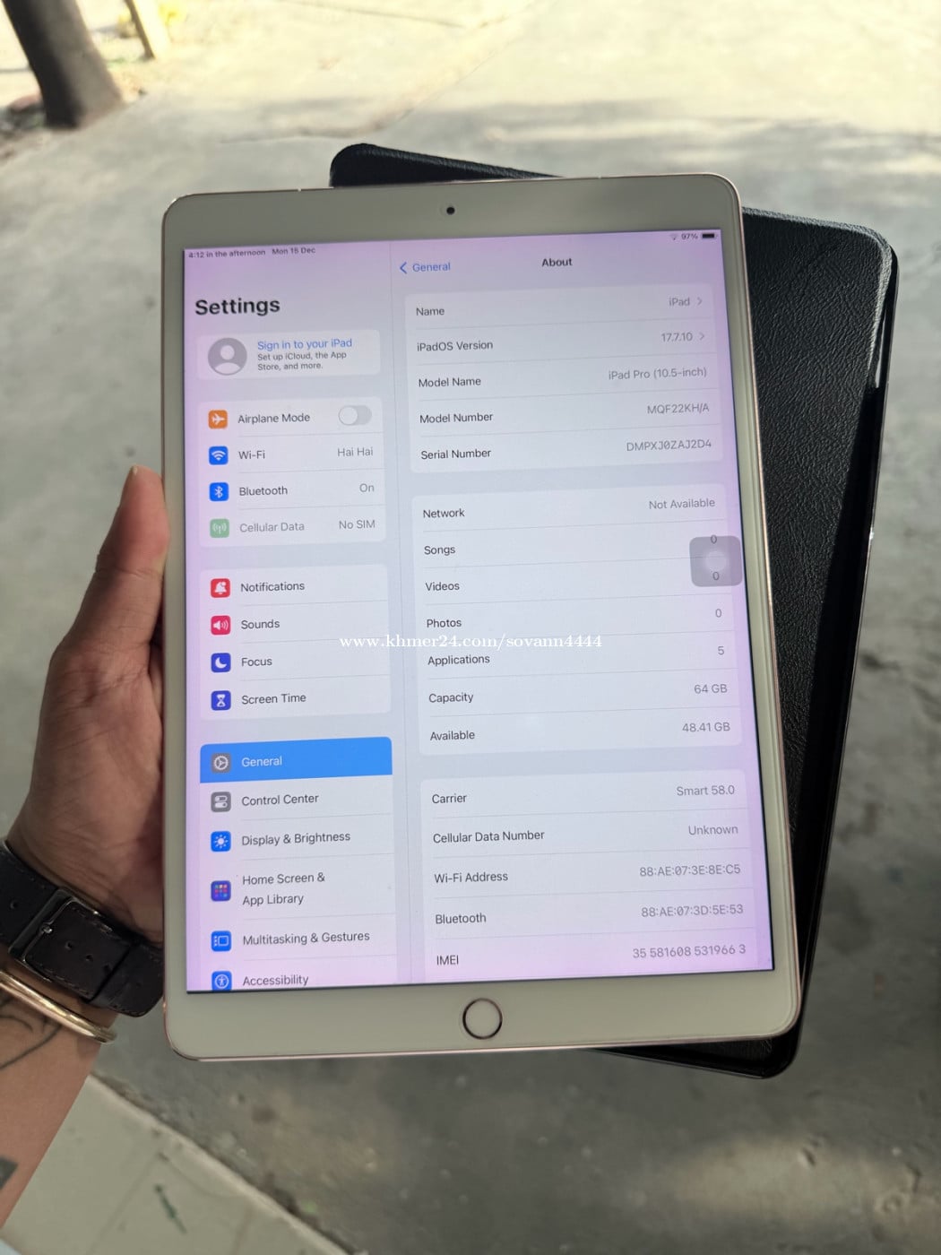 IPad Pro 10.5 សាណុំសុីន sim+wifi 64g អេក្រង់ឡើងពណ៌ស្ព័រក្រហមដាក់ពណ៌ ខ្មៅមើលអត់ឃើញ ធានានៅ សំណុំទាំងអស់