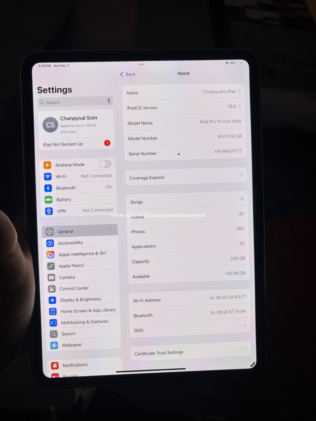 IPad Pro -11inch(M4) 256g មួយទឹក99 ថ្ម100% ធ្លាប់បញ្ចូល110ដង តម្លៃអាចខលសួររឺ ចរចារបាន