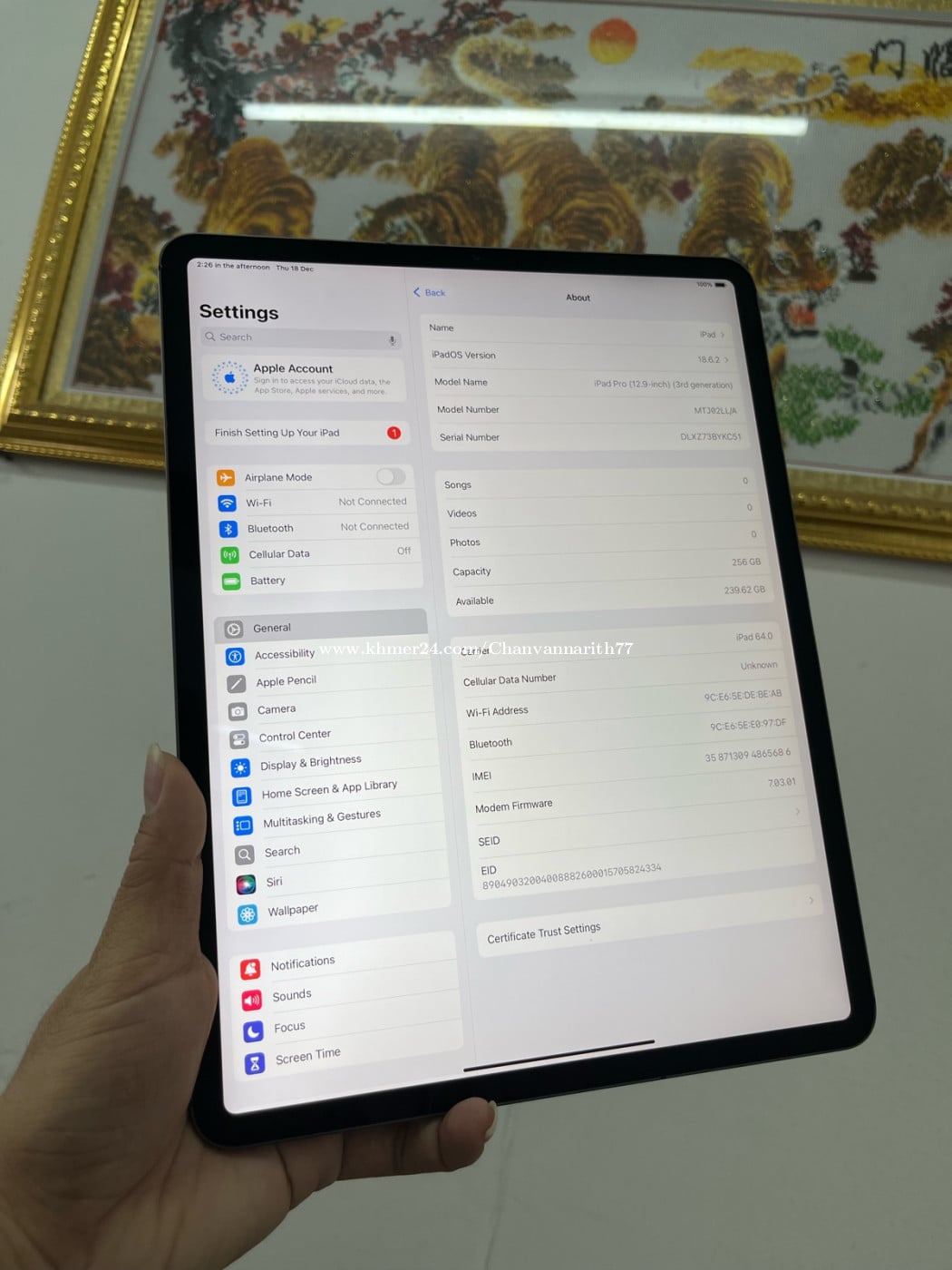 ipad pro 12.9inch 2018 256g sim+wifi មួយទឹកស្អាត ហ្សុីនសំនុំ free case screen ខ្សែសាកហ្សុីនមួយ តម្លៃពិសេសណាស់ ☎️ 010999973 011562929