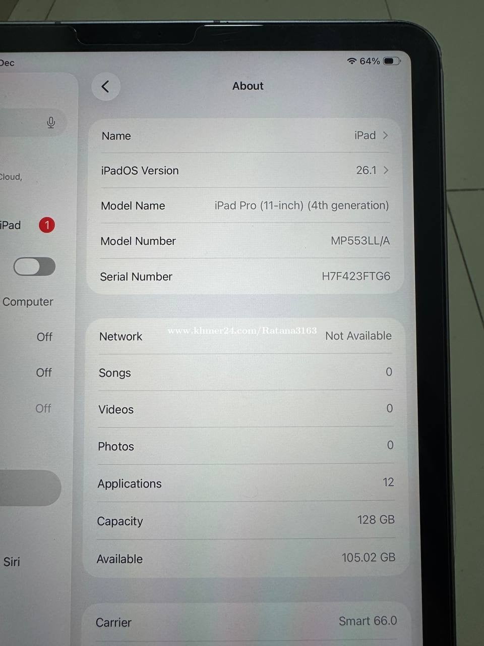 Sell iPad Pro M2 128GB Sim+Wifi New 97%.070466xxxClick To Call