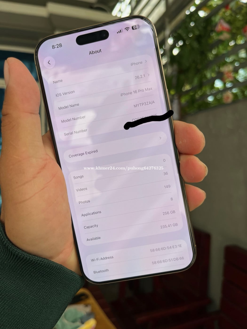 iphone 16 PM 256G ZA សានុំណែនក្តន់ ថ្មសុីន 91% តម្លៃ 835$ only phone ភ្នំពេញ 098390xxxClick To Call ទួលពង្រ តេឡេក្រាម 👇 https://t.me/+dy3n6kfo1QszZjQ1