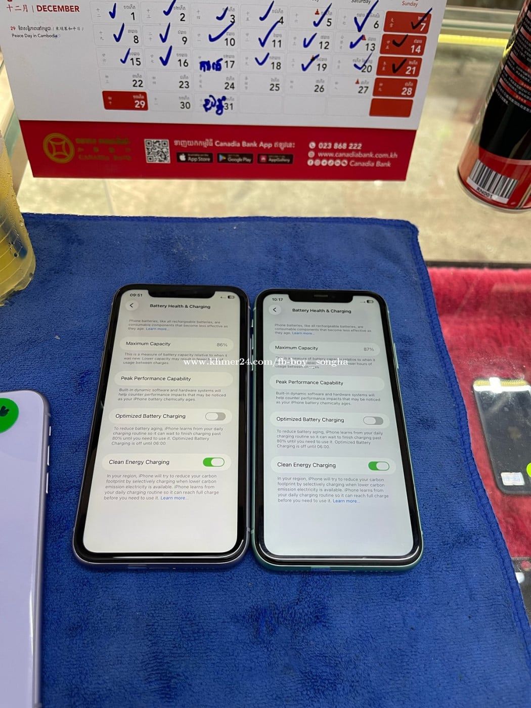 iPhone 11 64G LL ដូរសំបក នឹង ថ្ម ធានាម៉ាសុីនស្រុីន មានScan Camera មុខ ក្រោយ ច្បាស់ ធានាលើកការប្រើប្រាស់ 15ថ្ងៃ ទីតាំងចេនឡា តូប C1 24