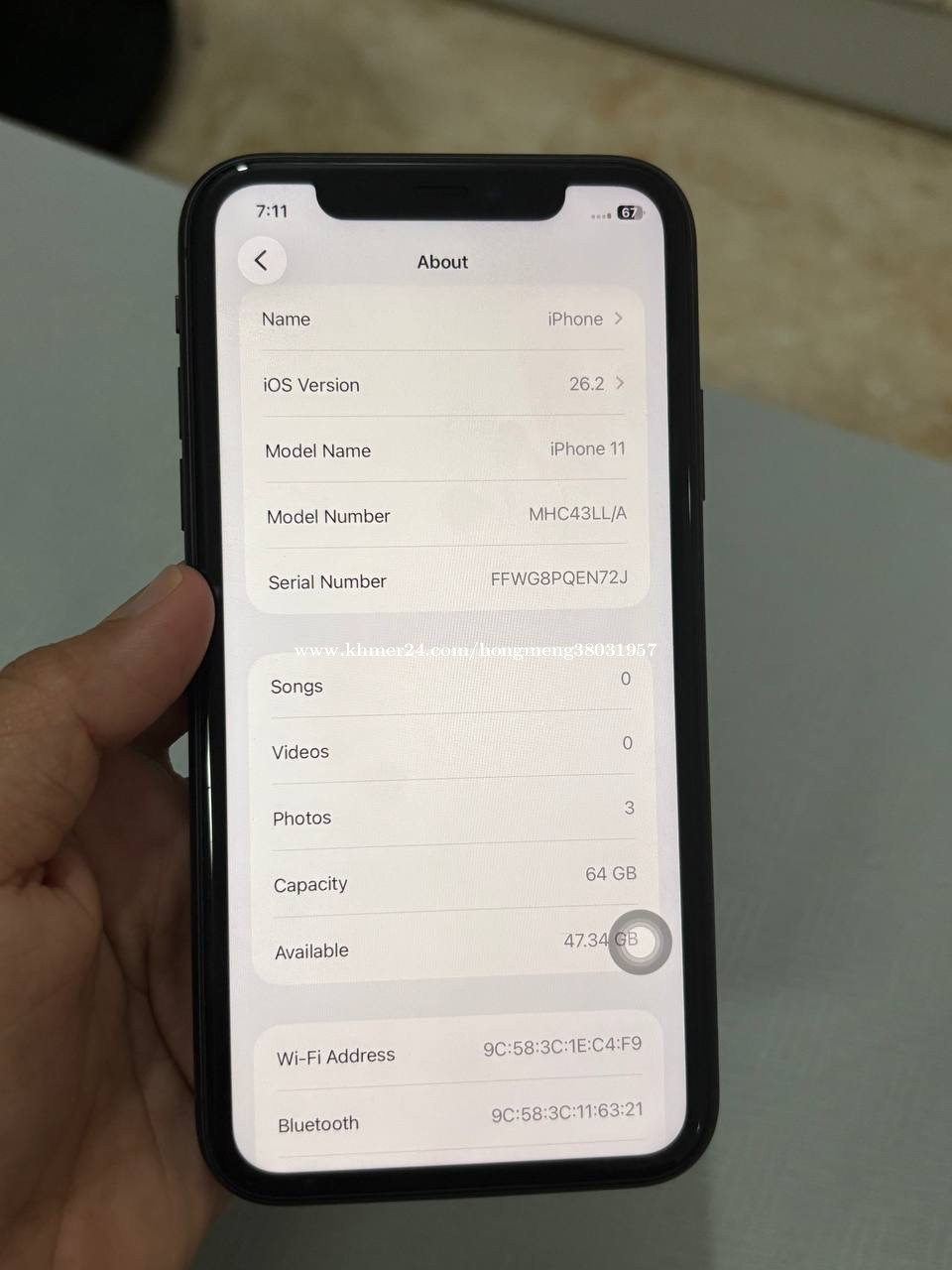 iPhone 11 64GB black Kuro battery 100% ស្រុកក្រៅ 190$ សានុំ ណែនស្អាត 100%
