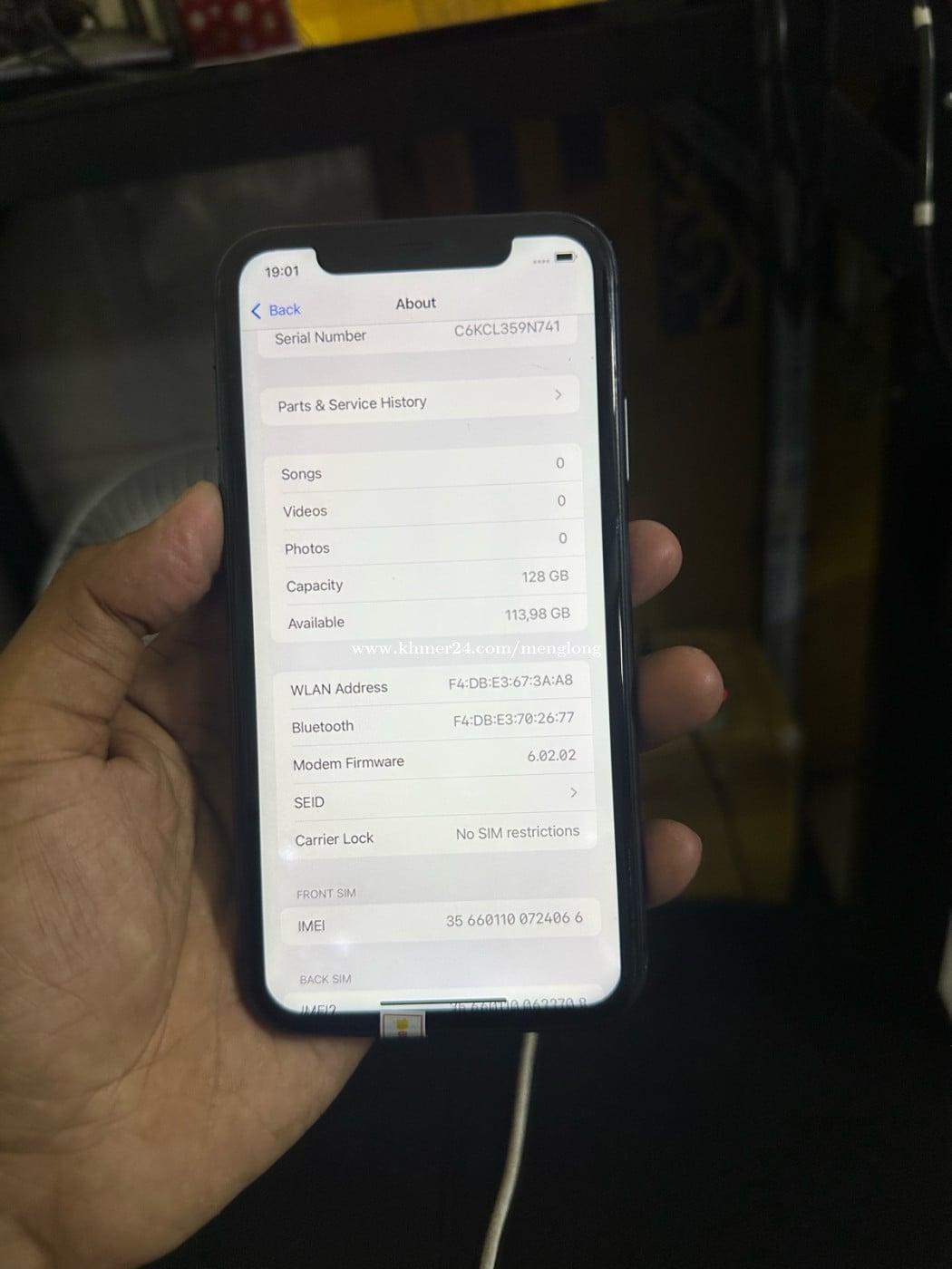 iPhone 11 128G អេក្រង់សុីនស្ទើស្ពរ តួបាន97% មានស្កេន កាំមេរ៉ាមុខក្រោយច្បាស់ តម្លៃ89$