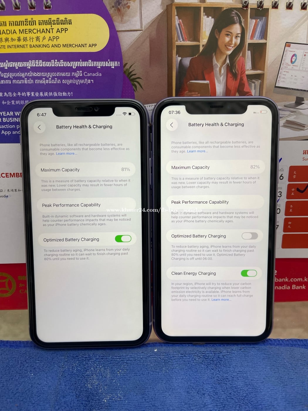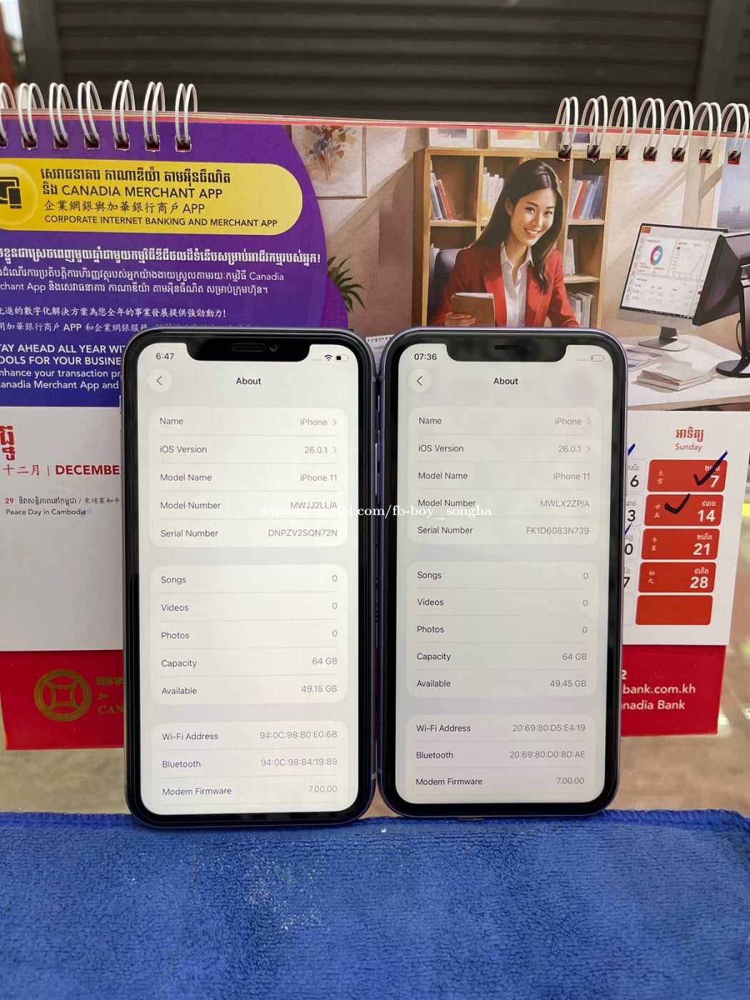 iPhone 11 64G LL សានុំស្រុីន ដូរតែសំបក អេក្រង់ស្រុីន ថ្មស្រុីន 81% 82% ទីតាំងចេនឡា តូប C1 24
