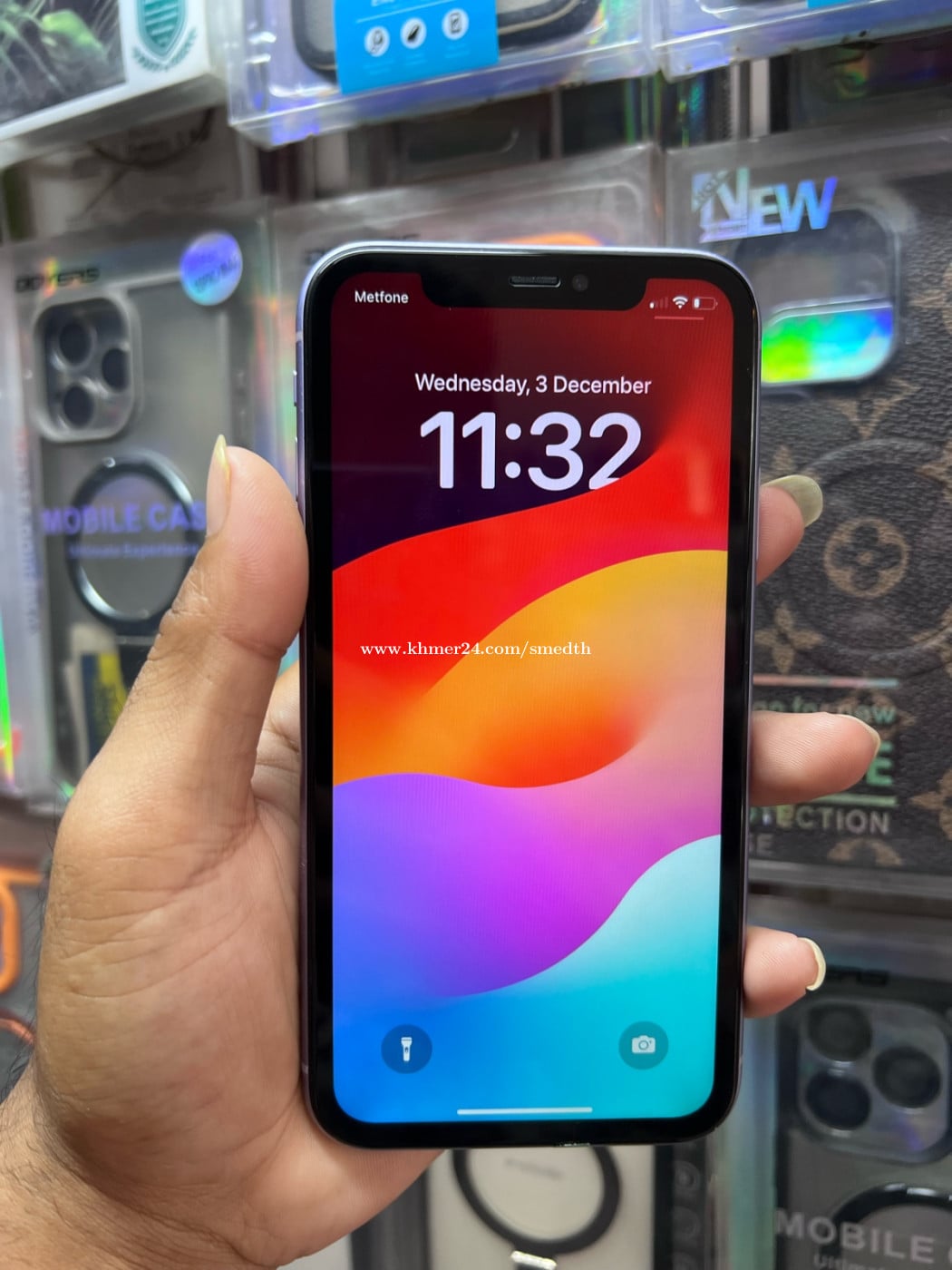 iPhone 11 LLA 64g អេក្រង់gx ថ្មដូរ ស្កែនអត់ចាប់មុខ( ស្គែនអាចធ្វើបាន) កាមេរ៉ាស្អាតលក់120$