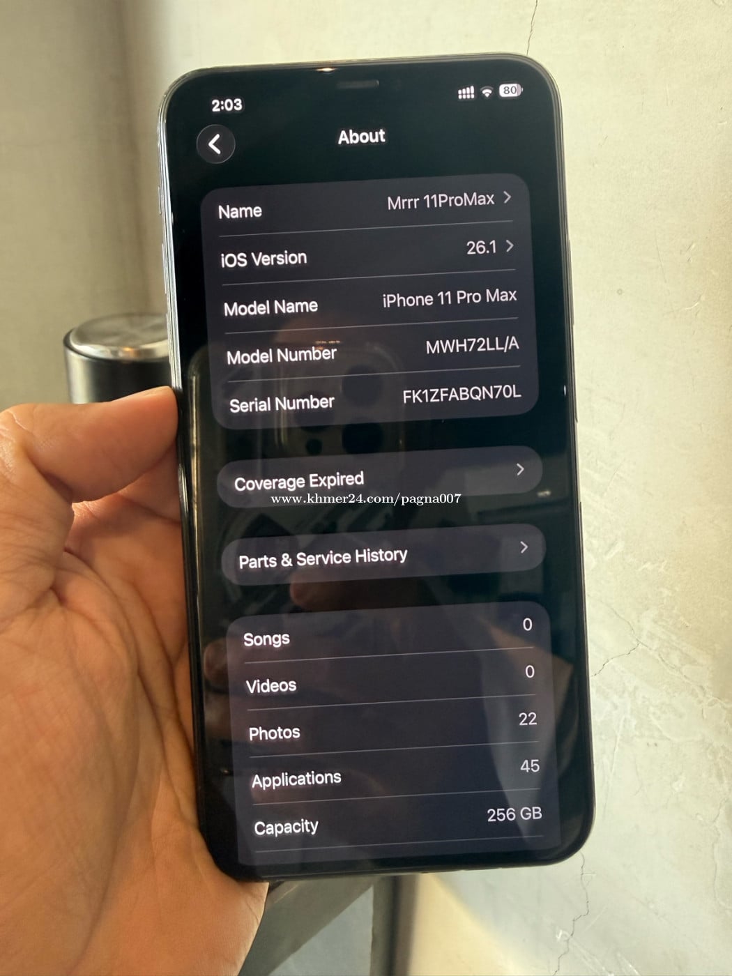iPhone 11 Pro Max 256G LL ស្ទើតួ