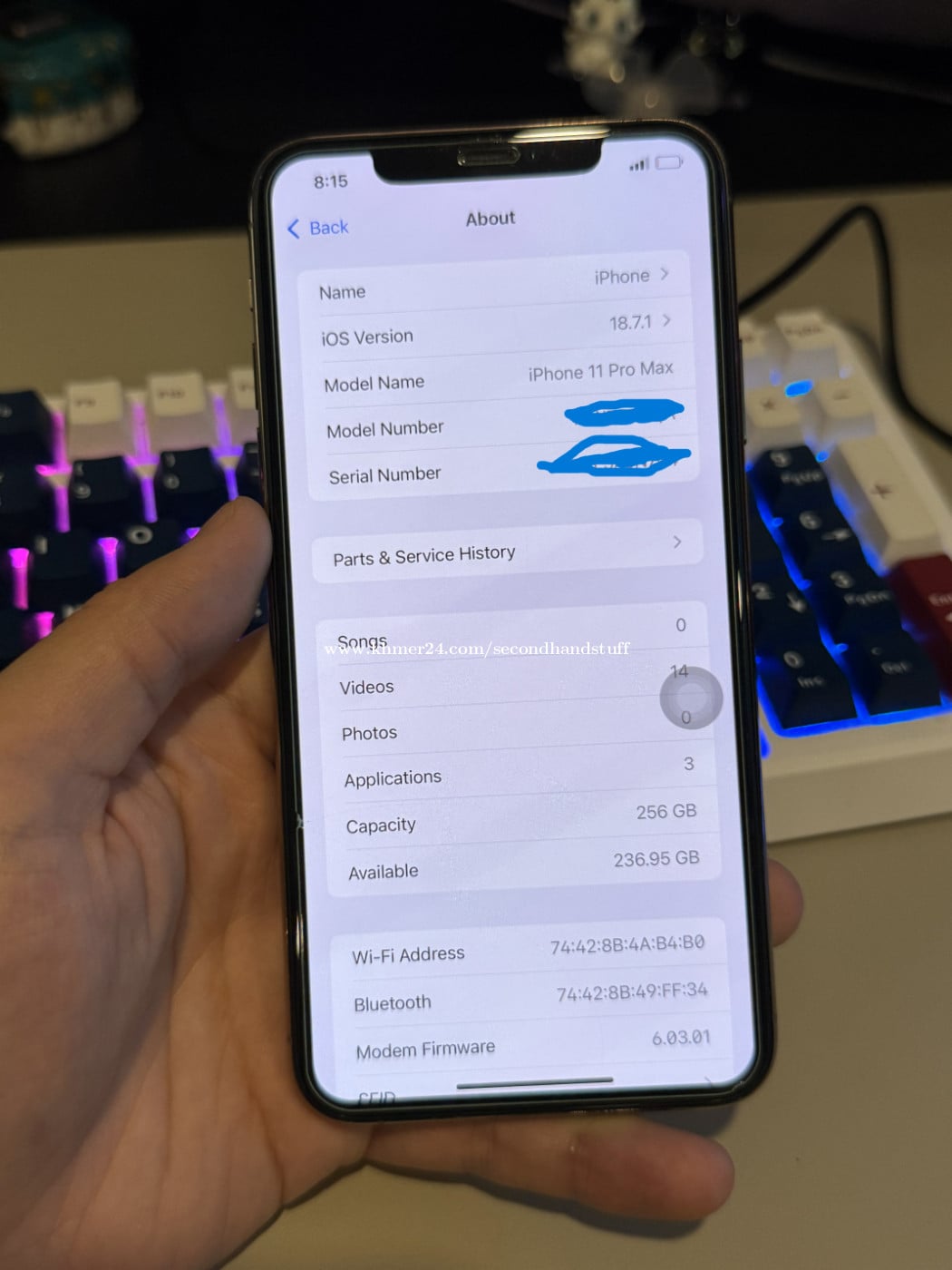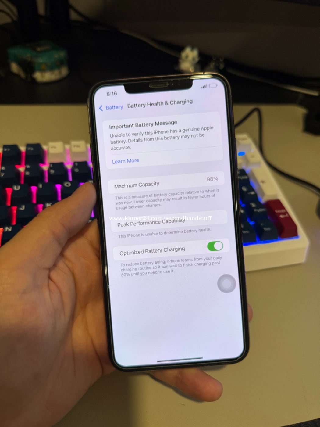 Iphone 11 Pro Max 256GB (ប្រើខ្លួនឯង) -តួអត់ដែលដូរ -ធ្លាប់ប្តូរថ្មហ្សីនម្តង
