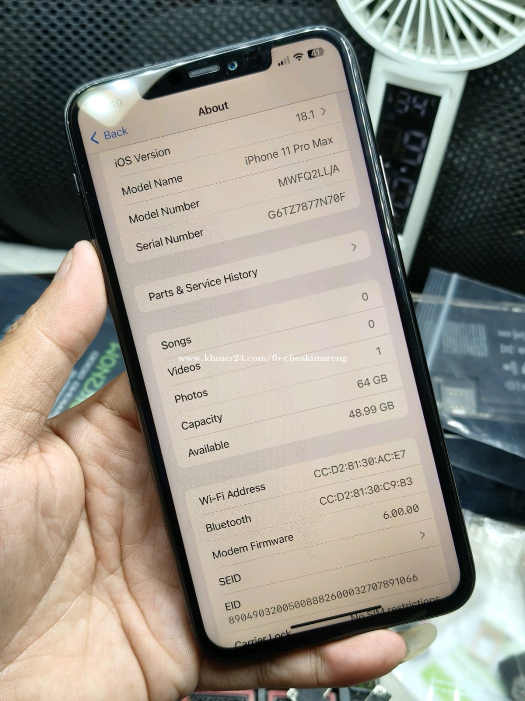 iPhone 11PM No Scan 64G អេក្រង់ថ្មី ខូច Camera 0.5 ប្តូរថ្មស៊ីនម៉ាសុីនមិនទាន់ជួសជុលលក់ 115$