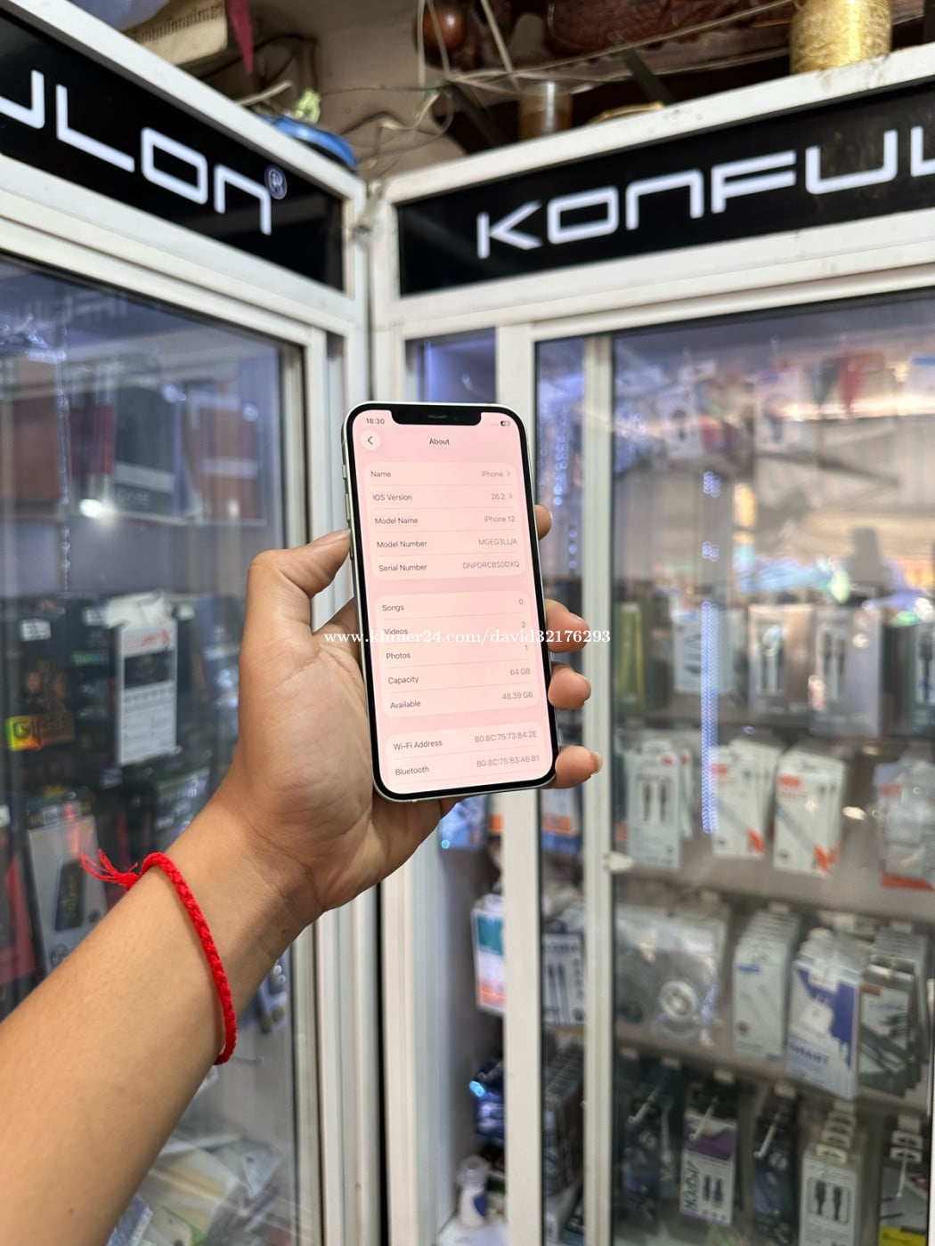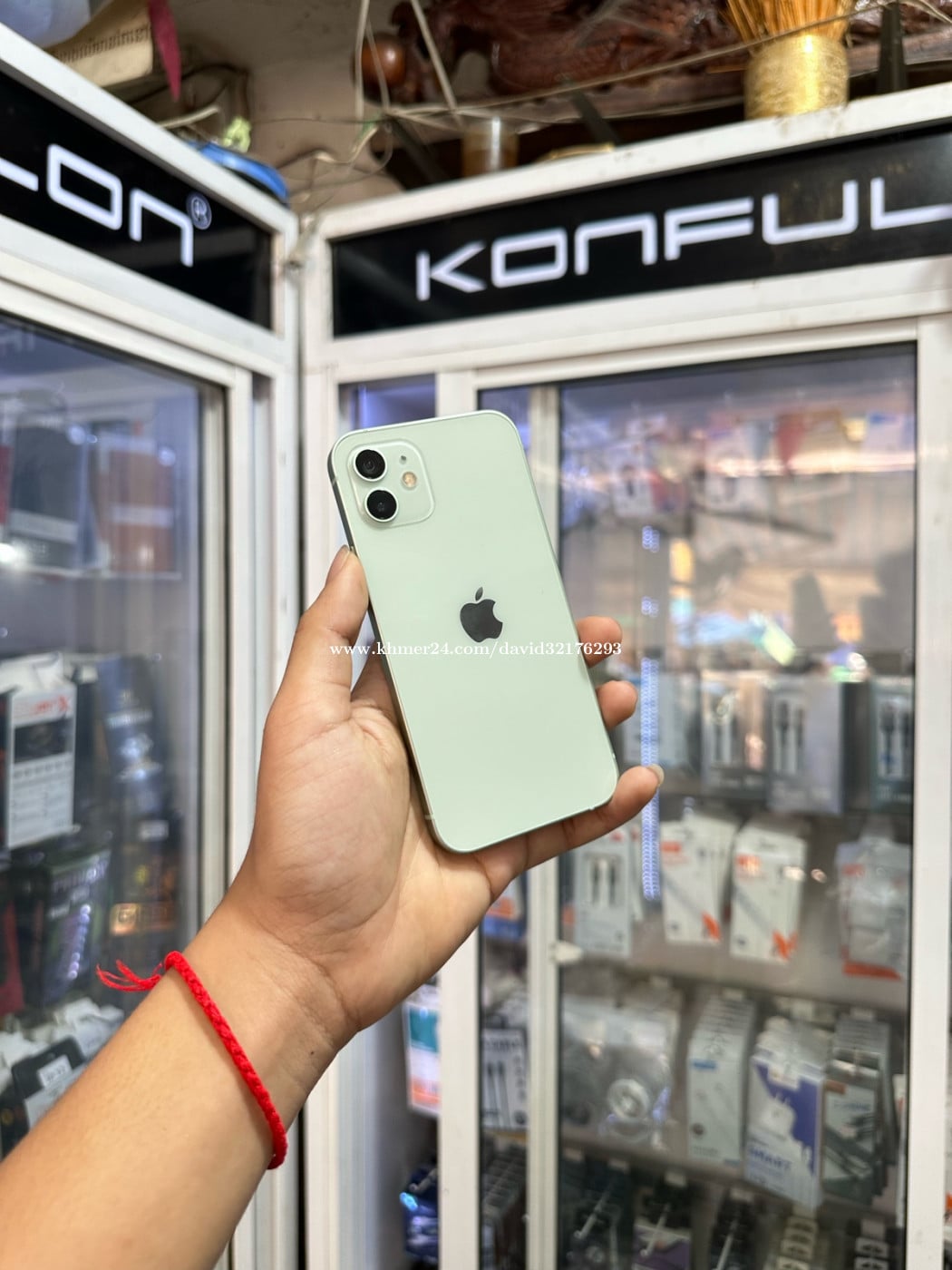 iPhone 12 ពណ៌ទឹកសណ្តែក 🍏 64GB LLA Battery 90% 🔋 តួស្អាត 99.99% សំណុំហ្សីន (ធានា1ខែ) តម្លៃល្អបងៗ 📥
