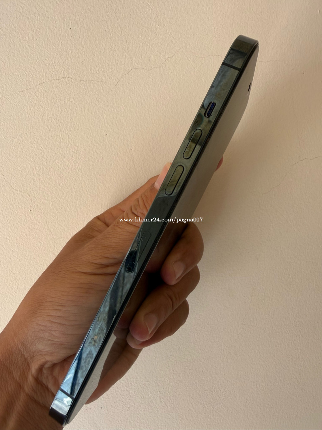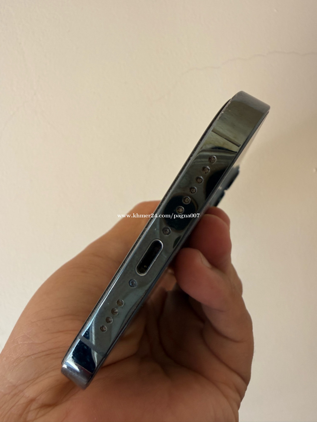 iPhone 12 PM 128Gb LL Sim 1 Esim 1 Blue តួរបាន 96% Battery 70% ម៉ាស៊ីនមិនធ្លាប់ជួសជុល មាន Scan មុខ បើចាប់អារម្មណ៍ឆាតមកសួរនាំបាន