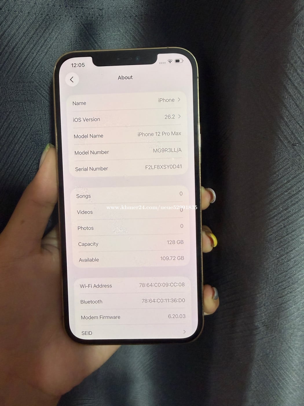 iPhone 12 Pro Max LL/A Storage 128G Battery 89% សាណុំសុីន