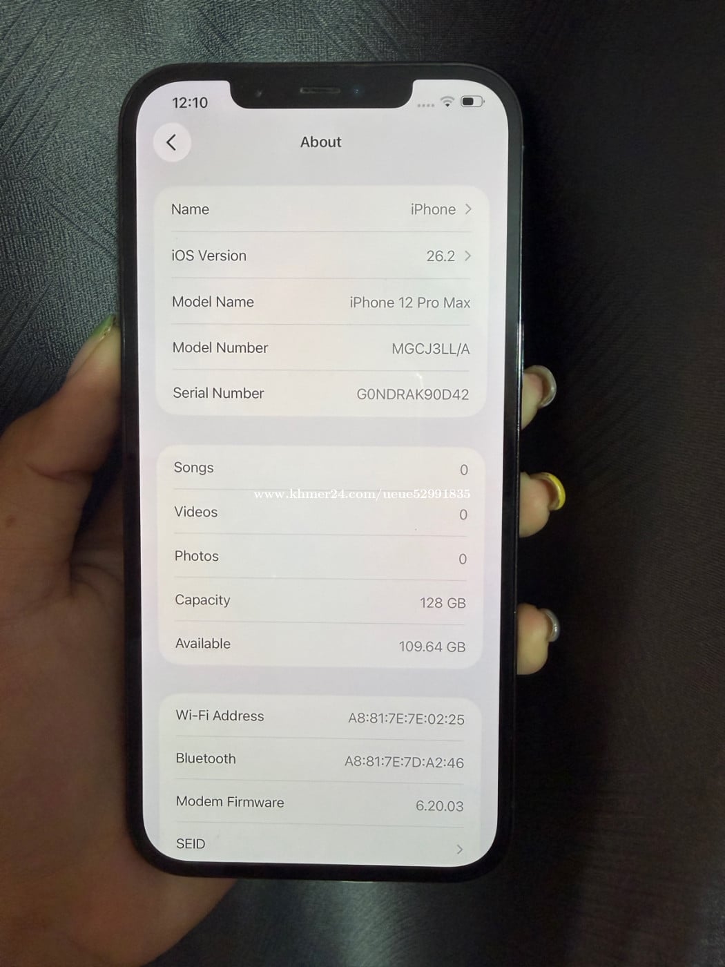 iPhone 12 Pro Max LL/A Storage 128G Battery 87% សាណុំសុីន