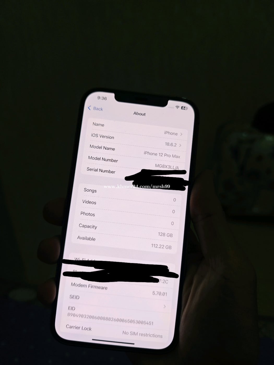 iPhone 12 Pro Max 128GB LL/A សំណុំសុីន តួនៅស្អាត លក់280$ 098771xxxClick To Call
