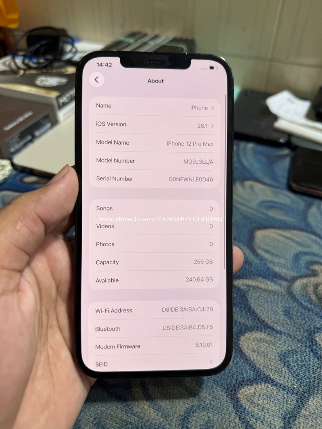 iPhone 12 Pro Max 256G សំណុំសុីន ស្អាត98% 365$