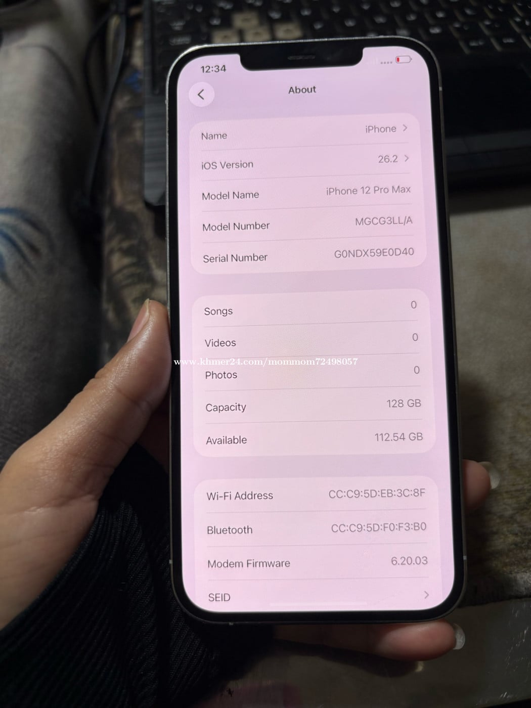 iPhone 12 Pro Max LL/A 128G សុំណុំហ្សុីន ស្អាត98%