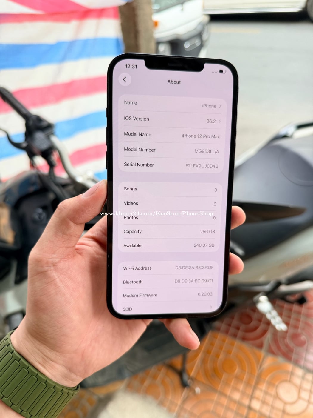 iPhone 12 Pro Max LL/A 256g ថ្ម83% សានុំណែន ស្ទេីរតួរខាងក្រោមដូចរូប តម្លៃ 350$ Telegram: 087233xxxClick To Call