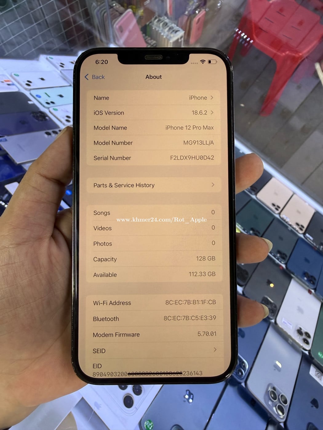 iPhone 12 Promax memory 128G ធ្លាប់ដូរអេក្រង់ហ្សីន ដាក់ហ្សីនវិញ ថ្ម ដូលើសអំពែ