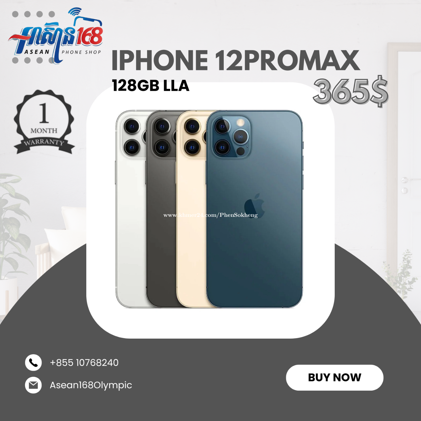 iPhone 12PM 128GB LLA មួយទឹកអាមេរិច Free Case + Screen + Adapter 20W 1 Month Warranty From Store -------------------------- 010768xxxClick To Call/078446xxxClick To Call 8AM-9PM Channel Telegram https://t.me/Asean168Olympic Telegram https://t.me/+85510768240 ------------------------- អាសយដ្ឋាន៖ ផ្ទះលេខ 99 ផ្លូវ 199 កែង318 ក្បែរវីរៈប៊ុនថាំអូរឡាំពិច
