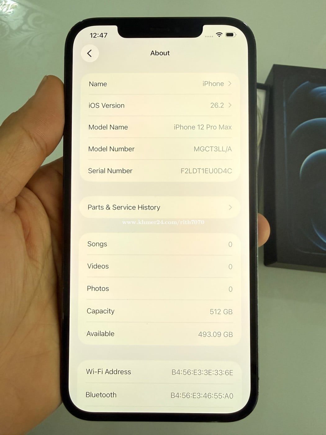 I want sale iPhone 12Promax 512G Come with original cable n box ទិញថ្មី ធានាមិនដែលដោះ ស្អាតគ្មានស្នាម Price : 360$ If anyone interest plz call me 016686xxxClick To Call