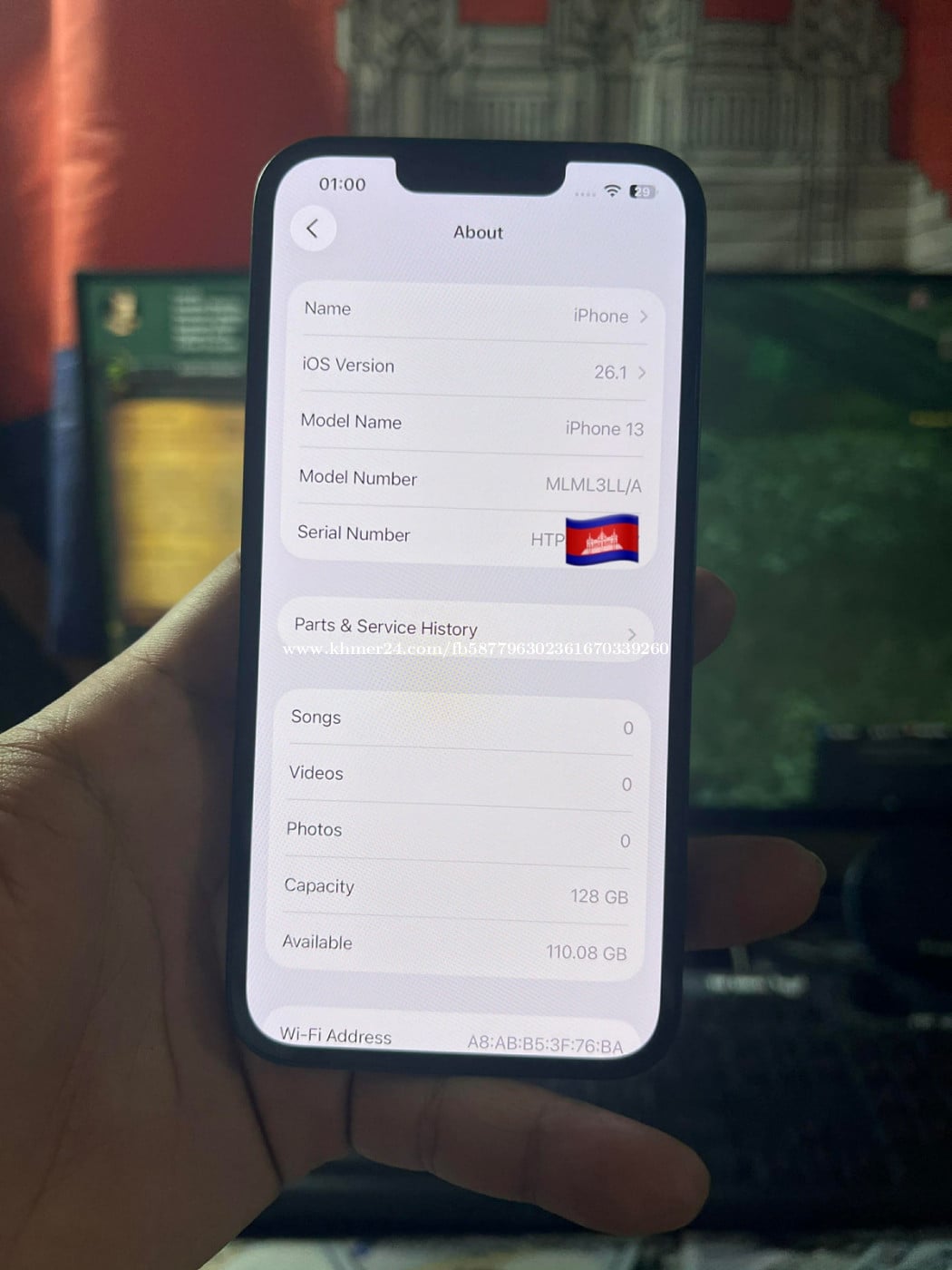 iPhone 13 / 128g / មានស្កេន / សុំណុំហ្សុីនទាំងអស់ ប្រវត្តិដូរថ្មហ្សុីនមួយគ្រាប់ដាក់ថ្មហ្សុីនចូលវិញ ថ្មកាន់ 87% camara ថតច្បាស់មុខក្រោយ ធានាអេក្រង់ហ្សុីនធានាម៉ាសុីនមិនធ្លាប់ជួសជុល លក់តំលៃក្រោមទីផ្សារនៅកម្ពុជា 🇰🇭 275$ ដាច់ ☎️📞0968911xxxClick To Call telegram📞☎️