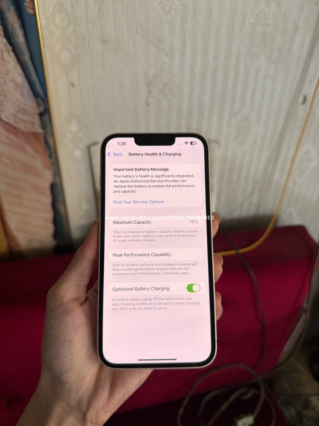 iPhone 13 LL/A 128G សានុំហ្សុីន ស្អាត98% only phone