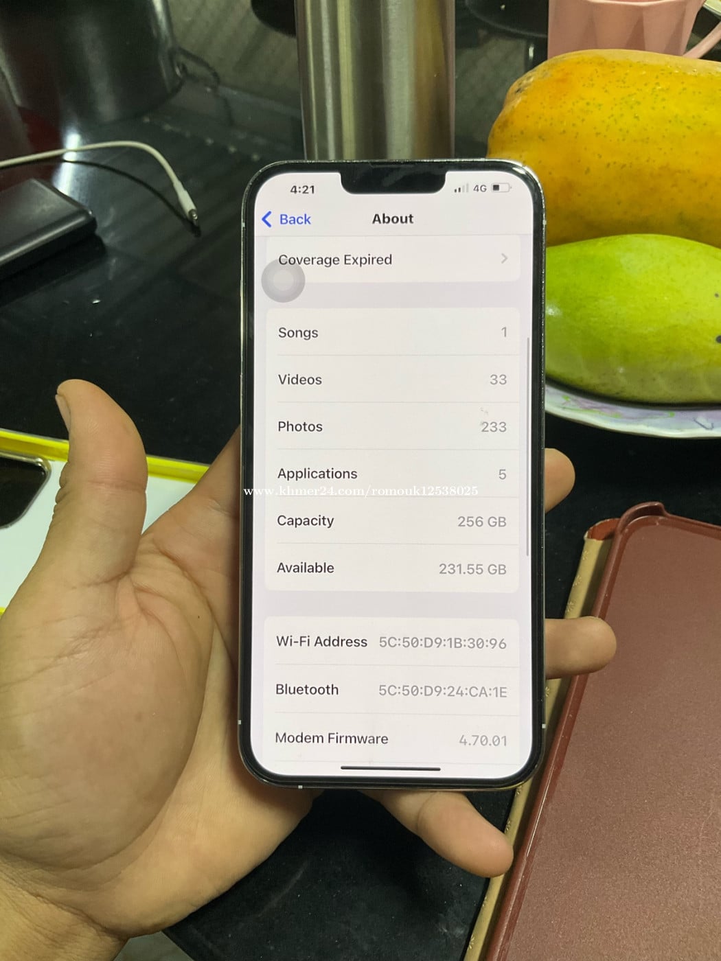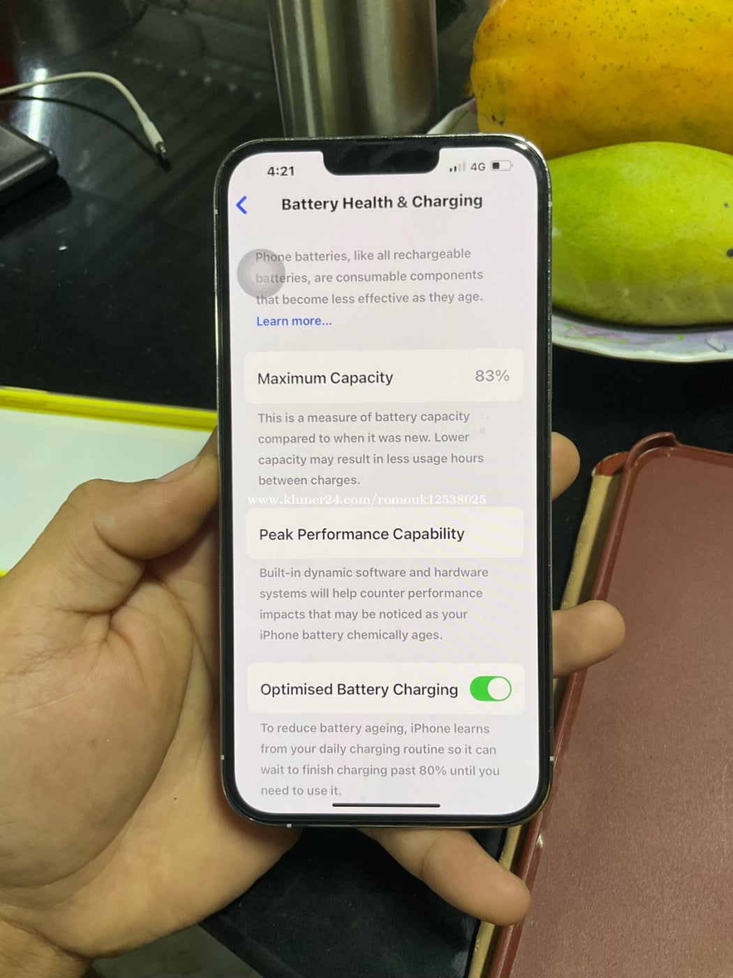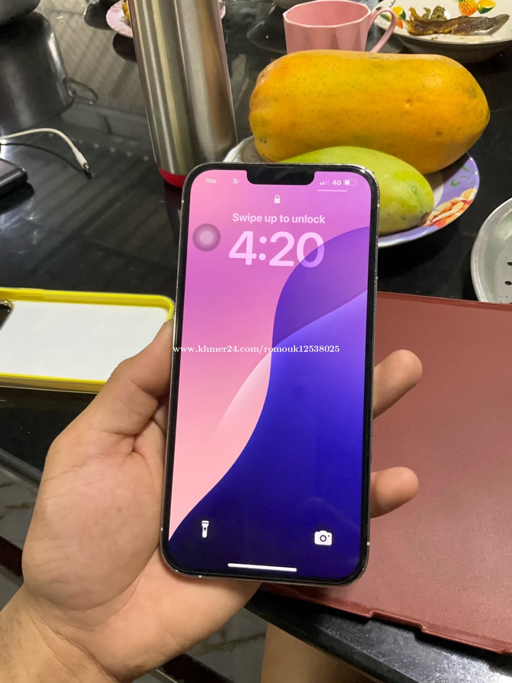iPhone 13 Pro Max សានុំសុីននៅស្គេន 256G ថ្ម83% 490$ ទីតាំងបាត់ដំបង 070414xxxClick To Call 069525xxxClick To Call