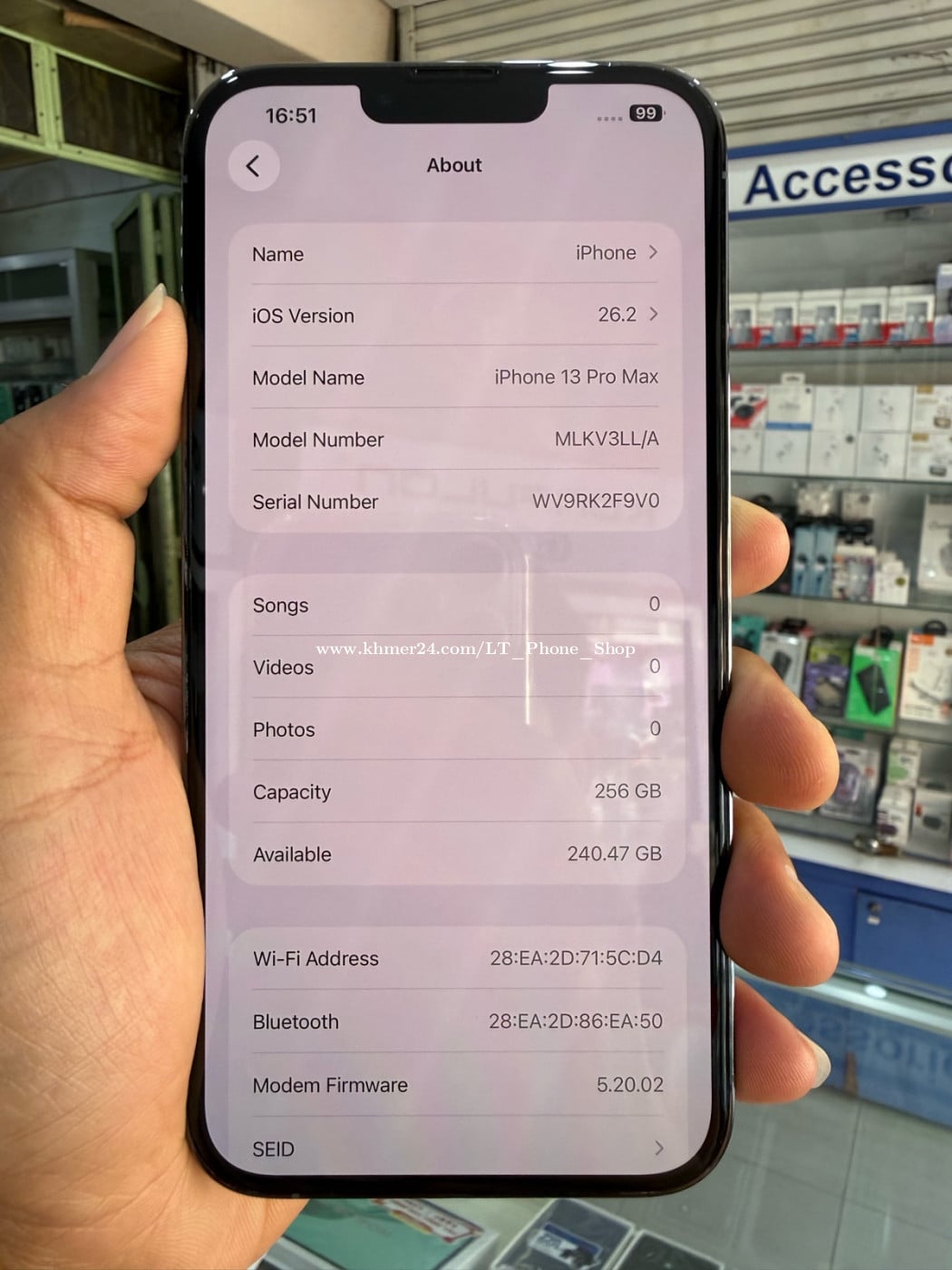 💥 iPhone 13 Pro Max (LL/A) 256GB, ពណ៍ទឹកសមុទ្រ, នៅស្អាត99%, តំលៃត្រឹមតែ 540$ និងមានធានារយះពេល1ខែ។ បន្ថែមជូននូវដុំសាក, ខ្សែសាក, កាស, សំបក, ស្រ្គីនកញ្ចក់ការពារ, អាខោនដោនឡូត, កម្មវិធី។ 🏡 ហាងលក់ទូរស័ព្ទដៃទំនើប អិលធី 📲 ទំនាក់ទំនងលេខទូរស័ព្ទ: 016711xxxClick To Call (Telegram) / 099333xxxClick To Call / 0888884xxxClick To Call 📩 Telegram: https://t.me/LTPhoneShop 📬 Facebook Page: https://www.facebook.com/share/165XEwR2ZA/?mibextid=wwXIfr 🗺️ ផ្ទះលេខ139c, ផ្លូវលេខ143 កែងផ្លូវលេខ376, សង្កាត់បឹងកេងកង3, ខណ្ឌបឹងកេងកង, រាជធានីភ្នំពេញ 📍Google map: https://maps.app.goo.gl/phENGCSAT33SaM9r7?g_st=com.google.maps.preview.copy 🛵 មានសេវាដឹកជញ្ជូនគ្រប់ខេត្តក្រុងរាជធានី