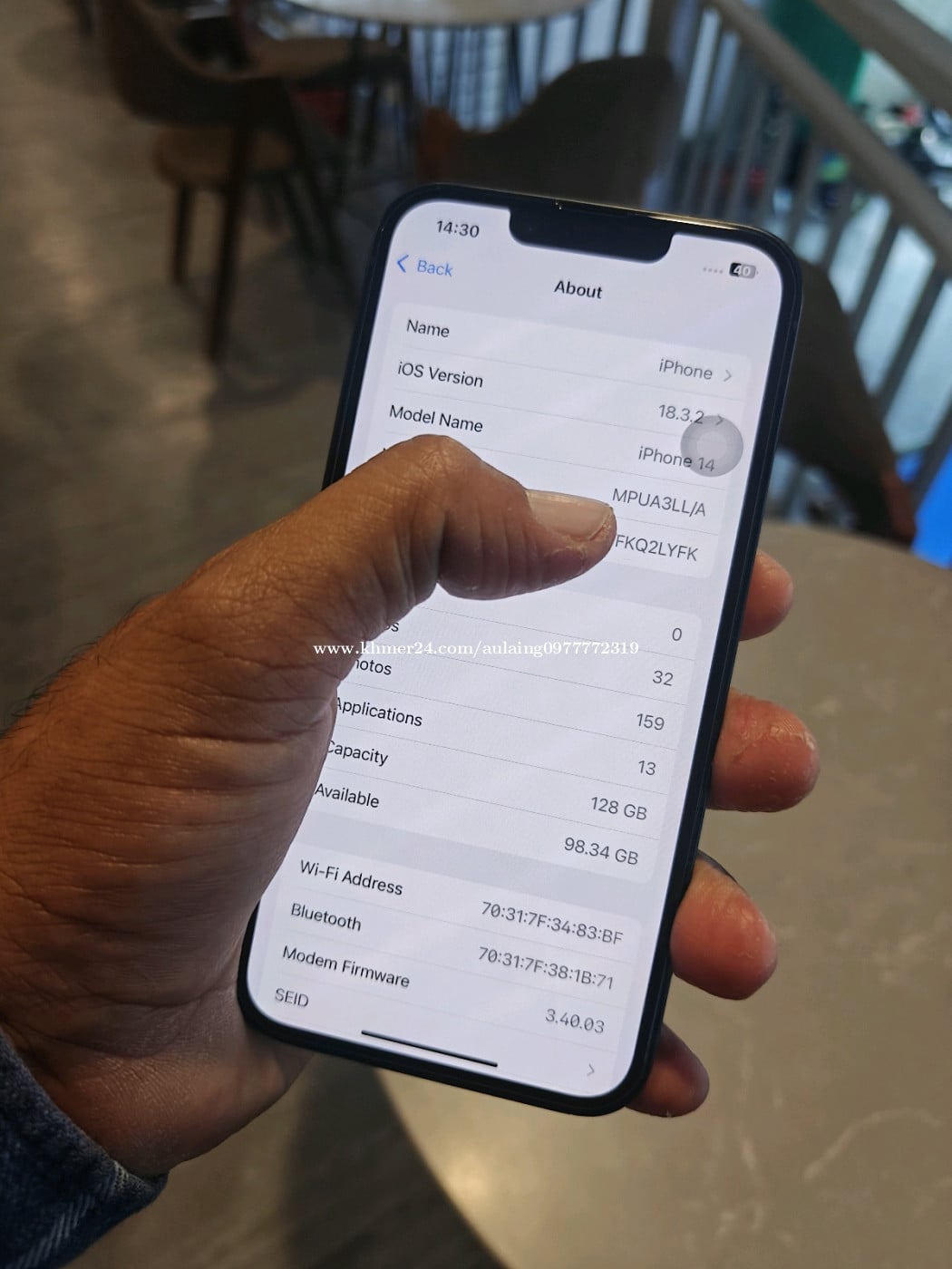 #iPhone 14 128G អេក្រង់ហ្សុីន ស្កេន ថ្មកាន់ កាមេរ៉ាថតច្បាស់មុខក្រោយ អត់ជាប់អីទាំងអស់ (ទិញដាច់វៃដូរ) #តម្លៃ $325👉Free ឆ្នាំងសាក ស្រ្គីន ស្រោម ☎️016419xxxClick To Call/0977772xxxClick To Call___ស្ទឹងមានជ័យ 👉https://t.me/moeungnuon (Telegram)