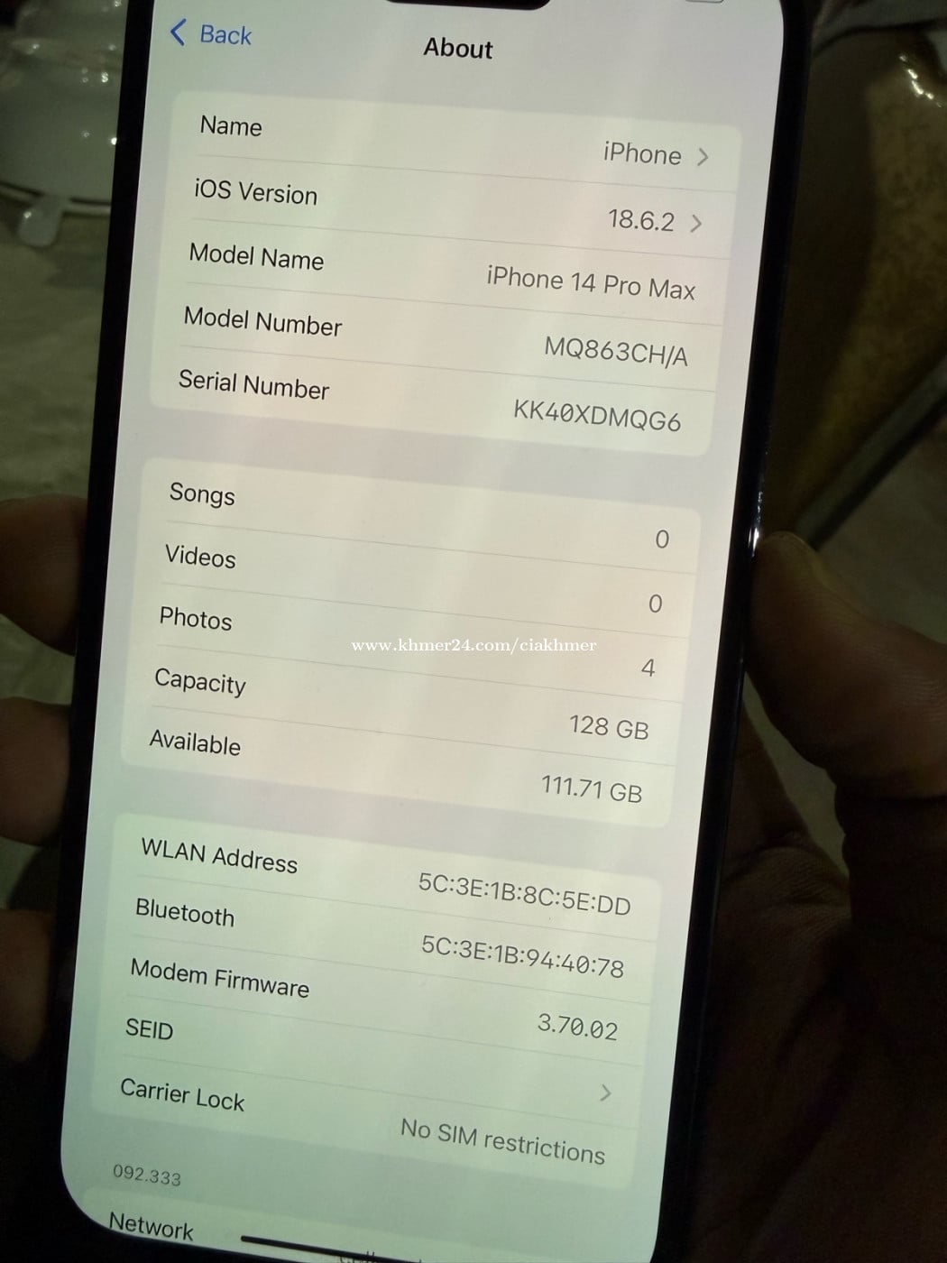 iPhone 14 Pro Max 128g CH/A Battery 85% សាណុំណែន តួរ កញ្ចក់ ស្អាត