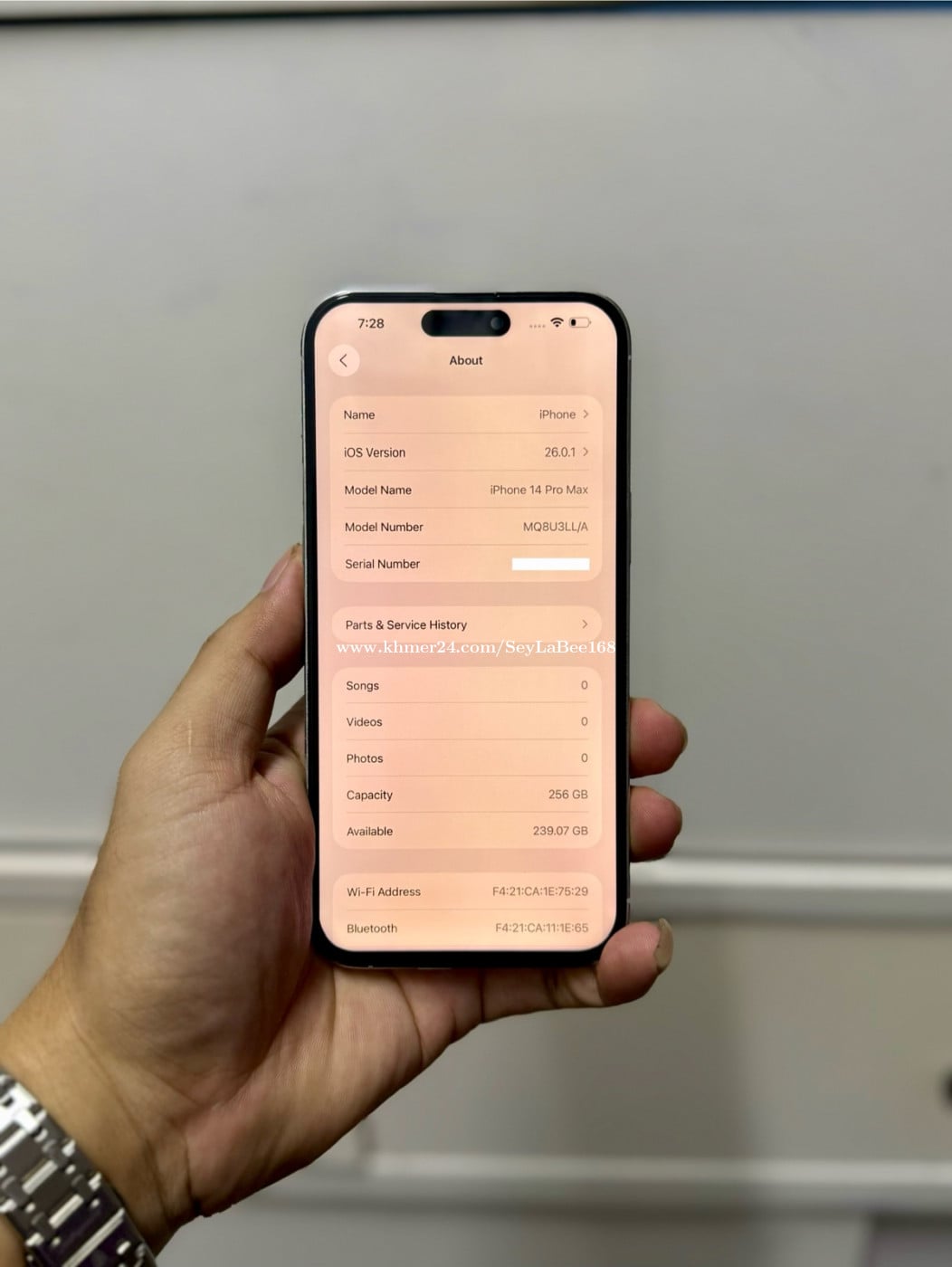 iPhone 14 Pro Max 256G ដូរអេក្រង់ថ្មី 120Hz កូល័រស្អាត គែមតូច ប្រើទ្រនាប់សុីម ប្រើបានគ្រប់ប្រព័ន្ធ បញ្ជាក់: ដូរអេក្រង់តែមួយគត់ ក្រៅពីអេក្រង់សំណុំទាំងអស់ Free ទ្រនាប់ស៊ីម គុណភាពល្អ ប្រើបានគ្រប់ប្រព័ន្ធ Free Case, Screen, ឆ្នាំងសាក,លែន អ្វីដែលអ្នកឃើញគឺជាអ្វីដែលអ្នកទទួលបាន អីវ៉ាន់នៅក្នុងរូបយ៉ាងម៉េច នៅក្រៅគឺយ៉ាងនោះ។ ធានាលើ ថាច់ និងម៉ាស៊ីន ១៥ថ្ងៃ ធានាលើ ទ្រនាប់ស៊ីម ៣ខែ ទីតាំង ទឹកល្អក់៣ ទួលគោក ភ្នំពេញ Tell:086908xxxClick To Call Telegram Tell:0888708xxxClick To Call Telegram: https://t.me/SeyLa_Bee Channel: https://t.me/iPhoneBSL
