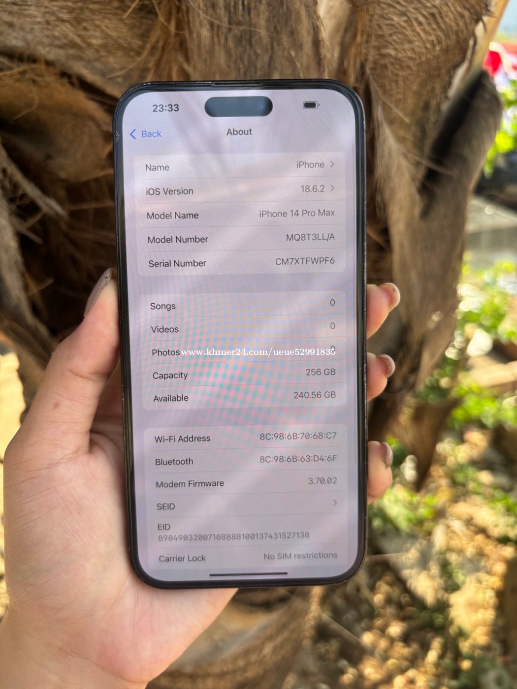 iPhone 14 Pro Max LL/A Battery 83% Storage 256G សាណុំសុីន ស្អាត99%