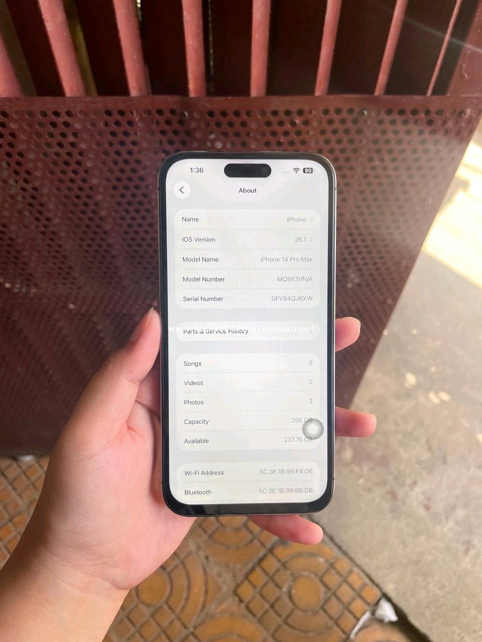 iPhone 14 Pro Max 256G អេក្រង់GX សានុំសុីន bypass-ប្រើបានតែwifi លក់:305$ដាច់ 📩010339xxxClick To Call (Telegram) 📍#ទីតាំងនៅជិតបឹងកក់ប្រហែល350m #ភ្នំពេញ