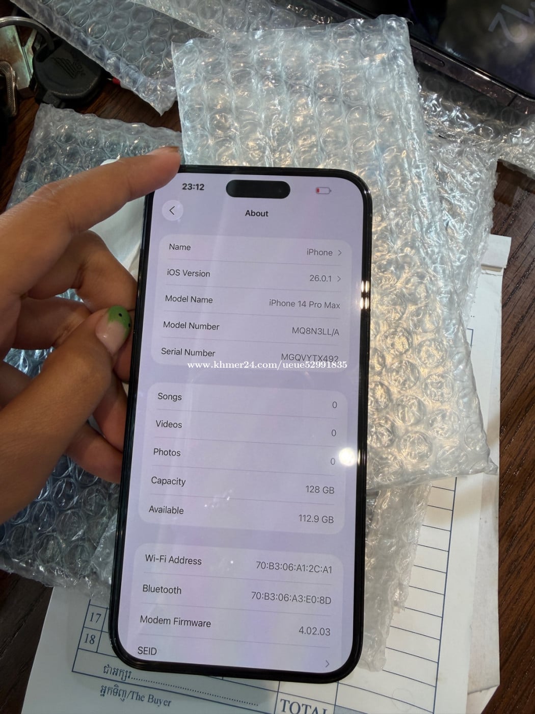 iPhone 14 Pro Max LL/A Battery 8+% Storage 128G សាណុំសុីនមកពីអាមេរិក 🇺🇸 តួស្អាត 99%
