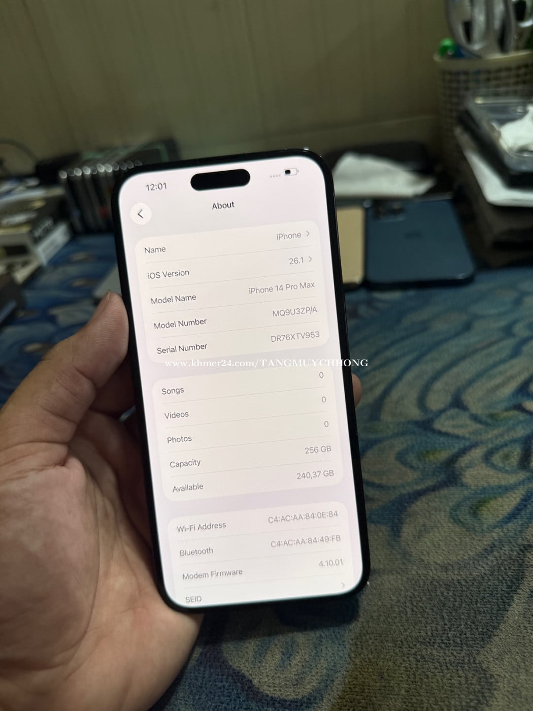 iPhone 14 Pro Max ZP 256G សំណុំសុីនណែន ស្អាត 98.5% លក់605$