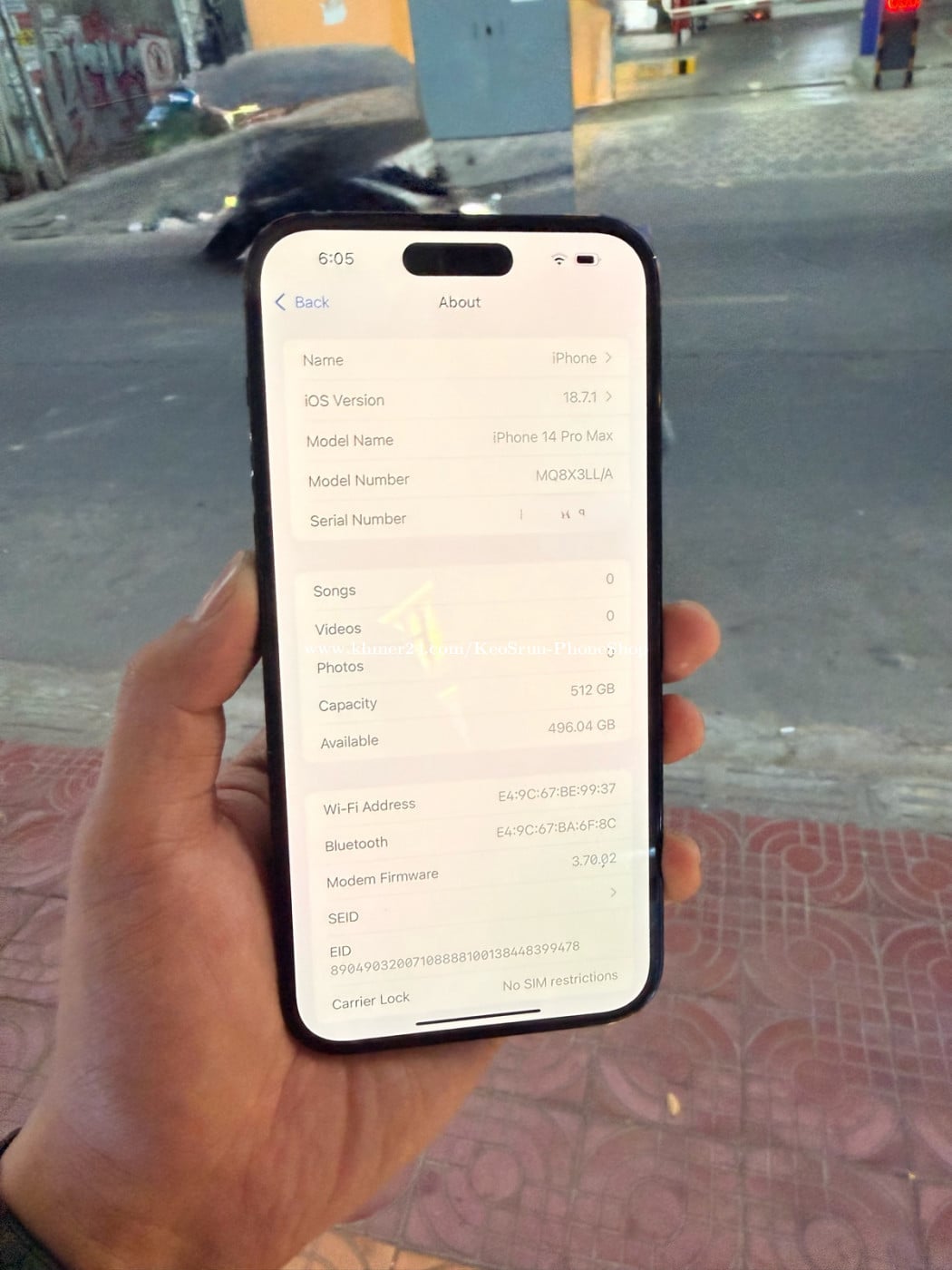 iPhone 14 ProMax LL 512g ថ្ម83% សានុំណែន តួរ95% B+ ( ESIM + ESIM ) តម្លៃ 550$ Telegram: 087233xxxClick To Call