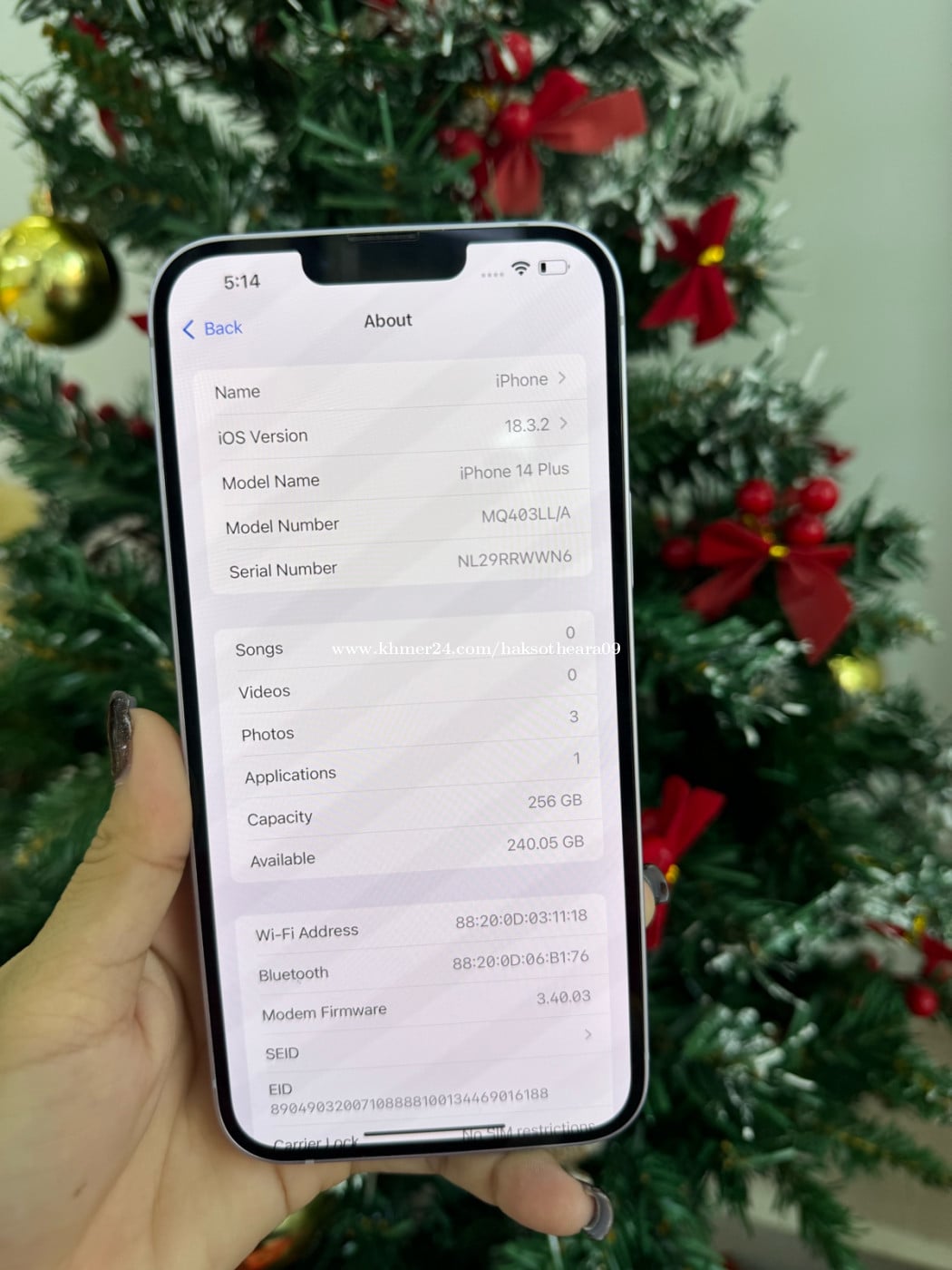 iPhone 14Plus 256g LL/A ស្អាត 98% តម្លៃ455$ ធានា1ខែ💜🥰