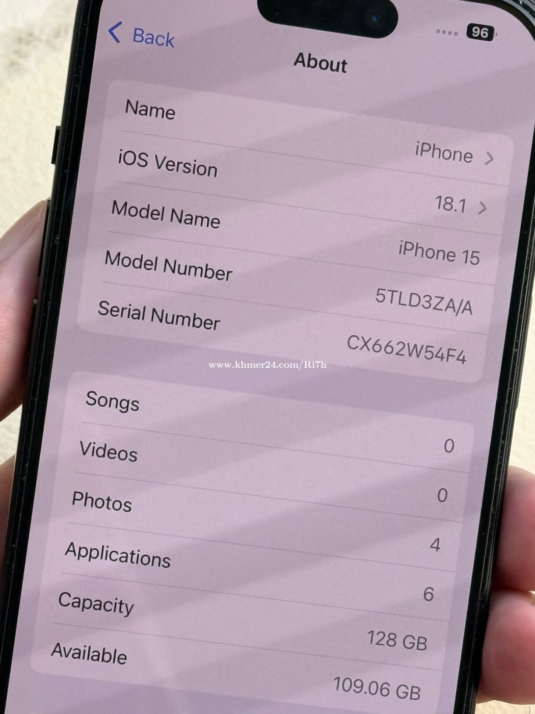 iPhone 15 ទំហំ 128GB ZA សាកថ្ម 0ដង