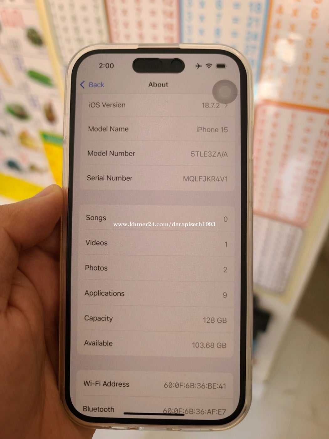 ខ្ញុំចង់លក់ទូរស័ព្ទ iPhone 15 128GB ZA/A. ម៉ាស៊ីនអត់មានខូច ដំណើរការធម្មតា ស្អាតសំនុំ អ្នកប្រើមុនស្រី អត់ដែរធ្លាក់ តួម៉ាស៊ីន 99%✅ - Camera 🆗 - Screen 🆗 - SIM 🆗 - Free Phone Case 🆗 - ពណ៌ផ្កាឈូក Pink 🩷 អាចណាត់មើលផ្ទាល់ នៅម្តុំវត្តភ្នំក៏បាន ✅ 095555xxxClick To Call (Telegram ក៏បាន)