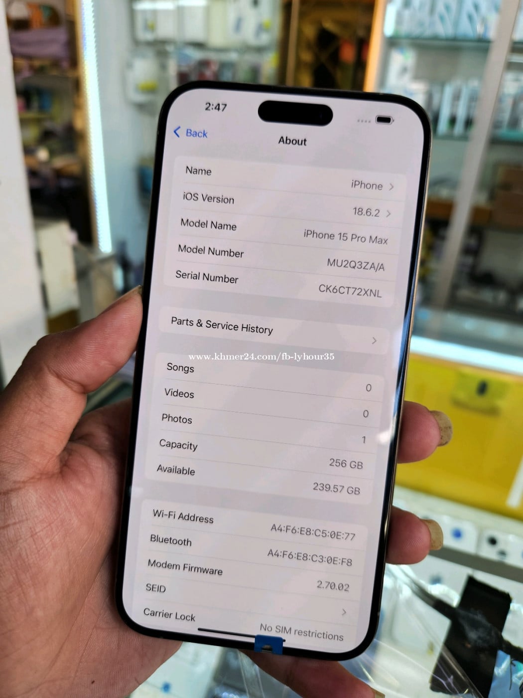 15 Pro Max ZA 256GB សាណុំអត់ស្កេនមុខ ថ្មនៅ86% ធានាប្រើម៉ាអេម តម្លៃ 550$ ចាប់អារម្មណ៍ ឆាត