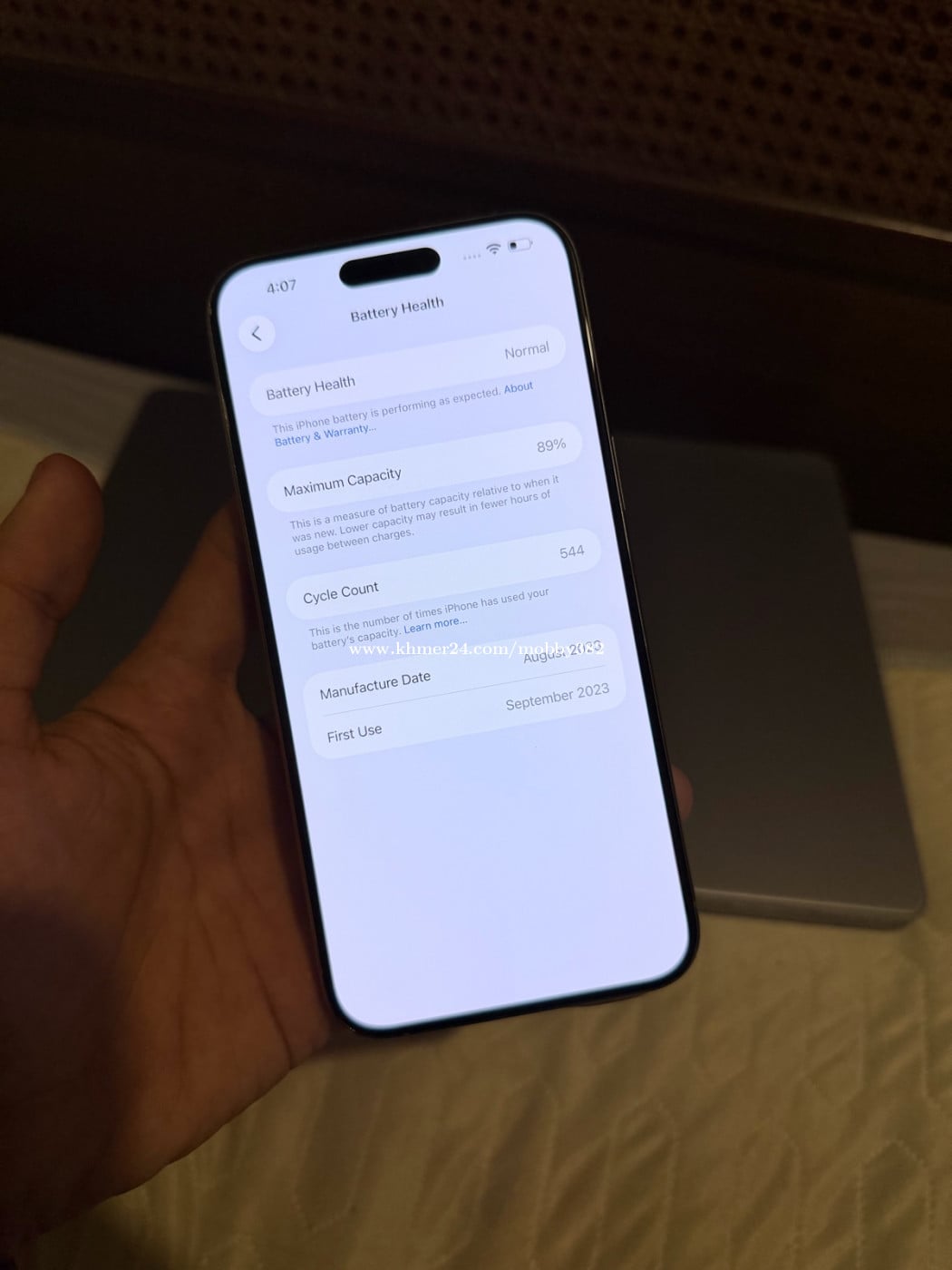 📱Condition 99.99% គ្មានស្នាម Replace a display Battery health 89% Inbox for more information 📥